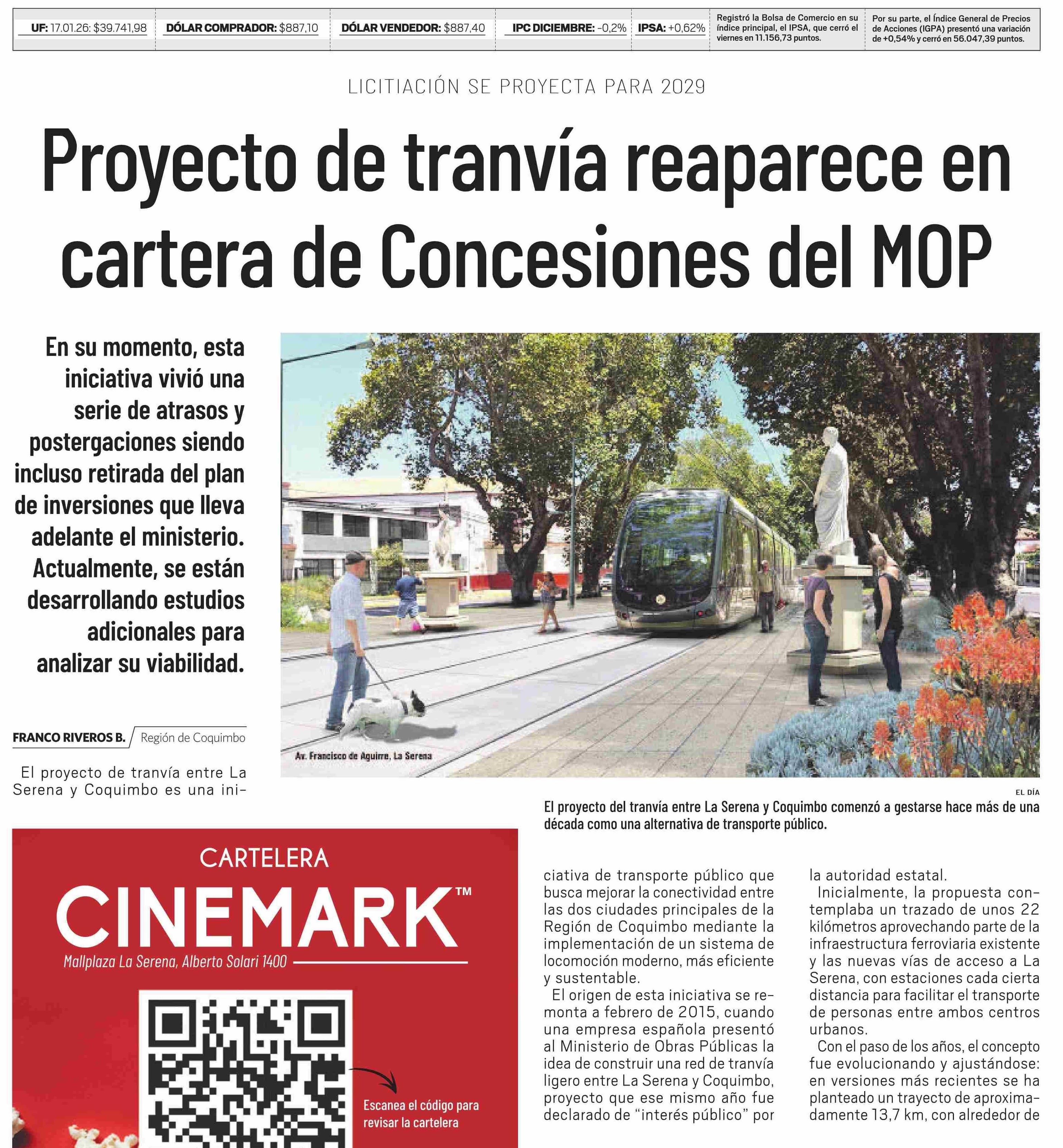 Proyecto de tranvía reaparece en cartera de Concesiones del MOP