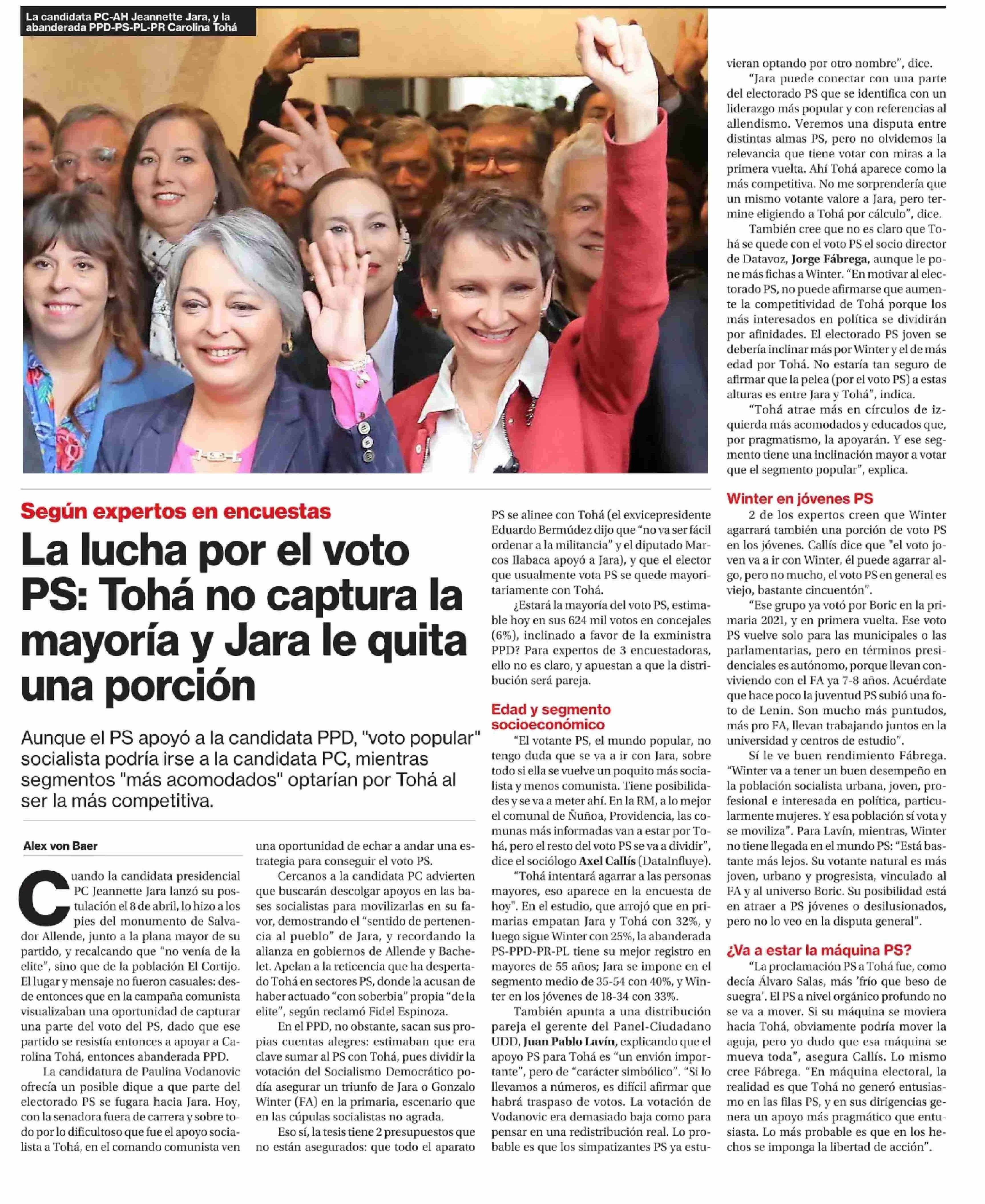 La lucha por el voto PS: Tohá no captura la mayoría y Jara le quita una porción