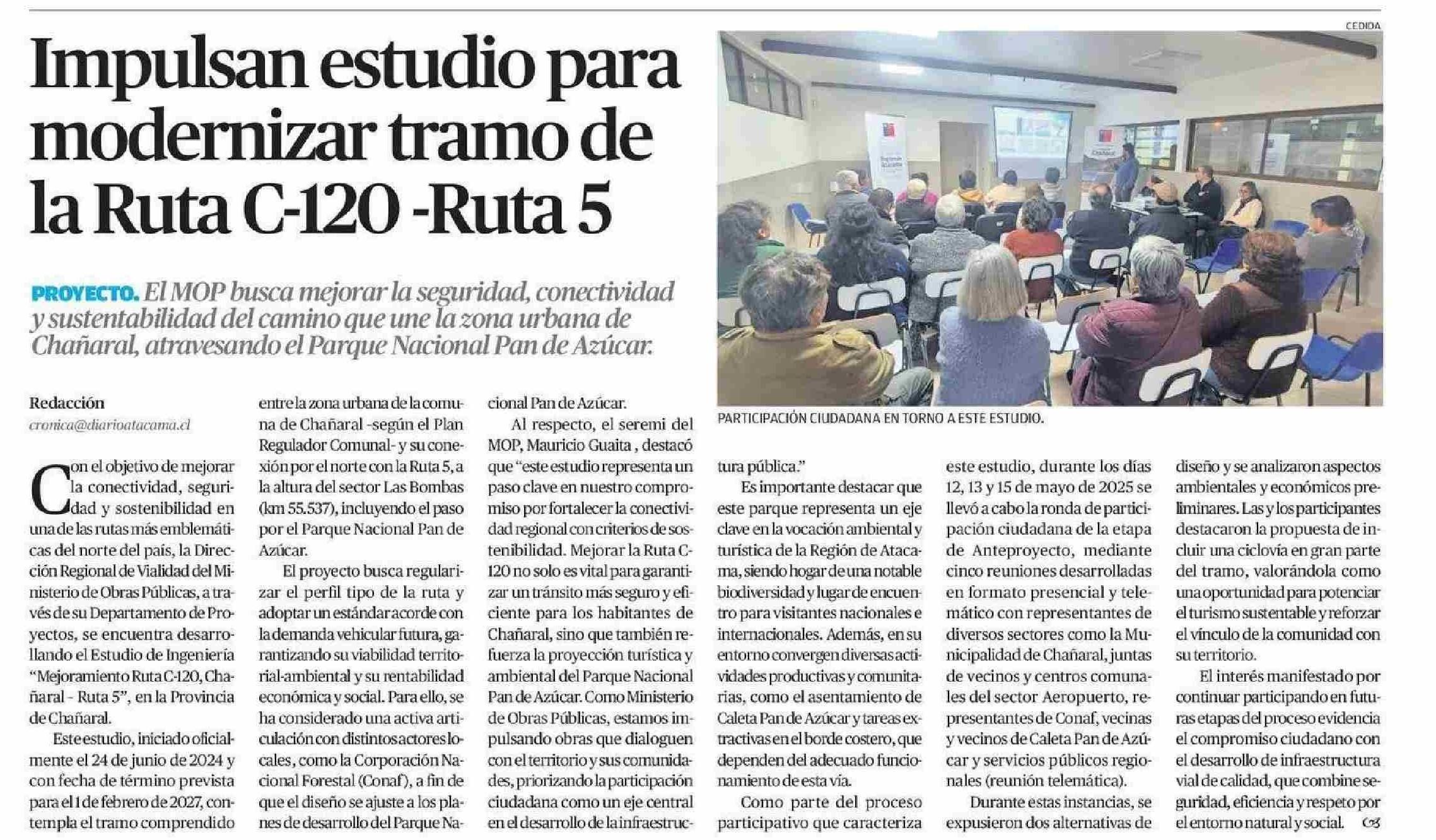 Impulsan estudio para modernizar tramo de la Ruta C-120 -Ruta 5
