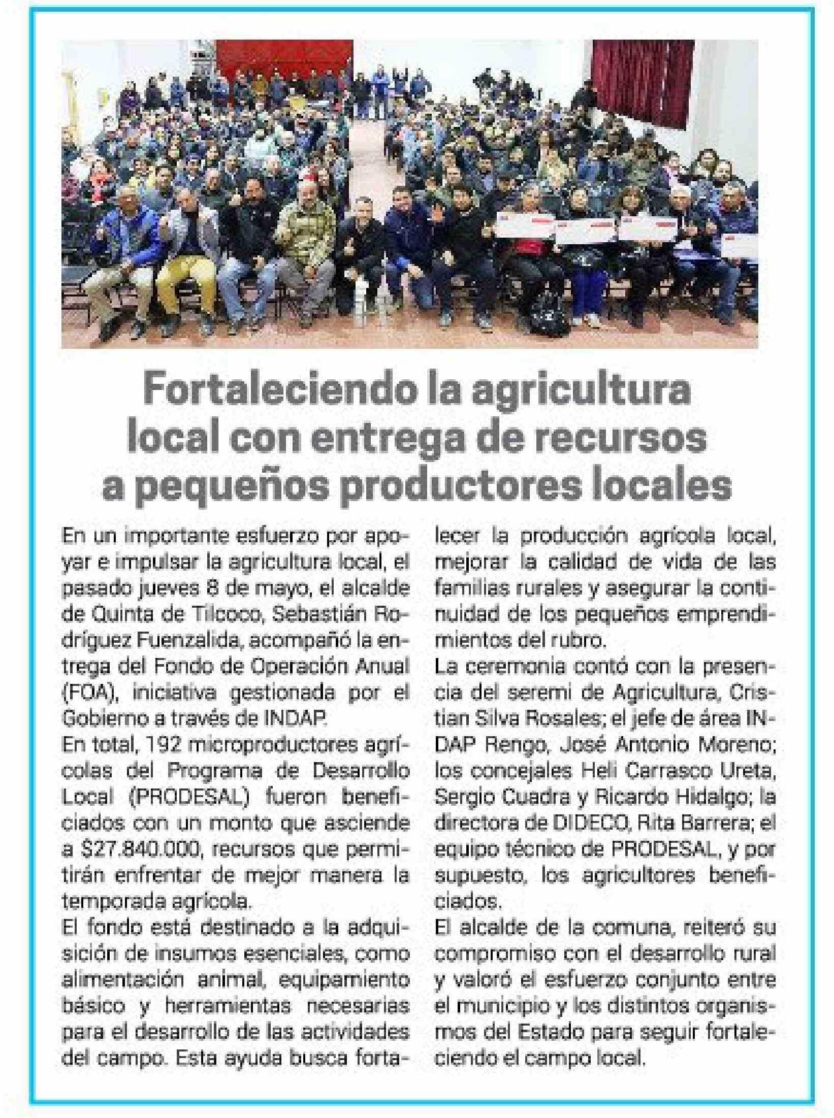 Fortaleciendo la agricultura local con entrega de recursos a pequeños productores locales