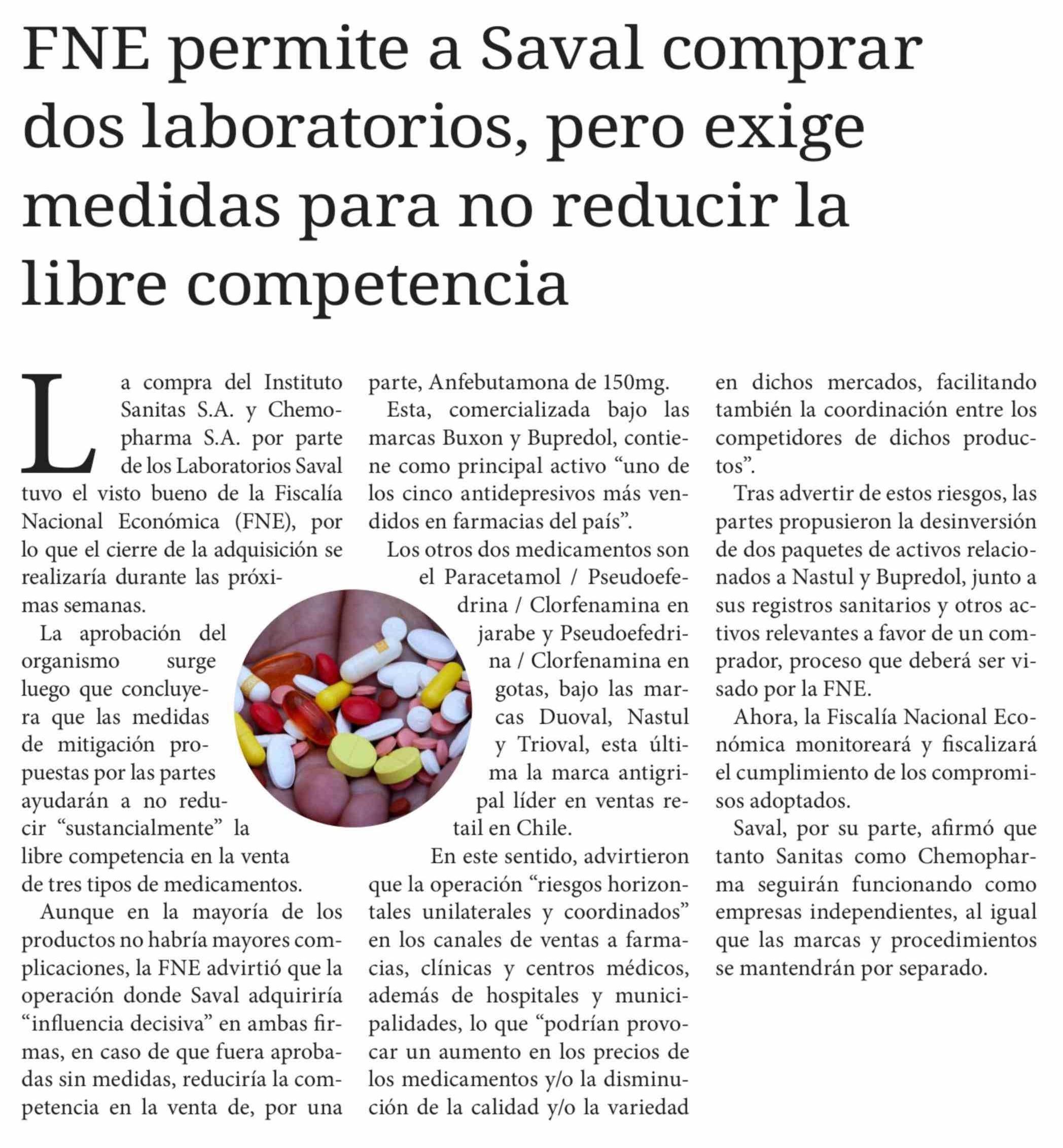 FNE permite a Saval comprar dos laboratorios, pero exige medidas para no reducir la libre competencia