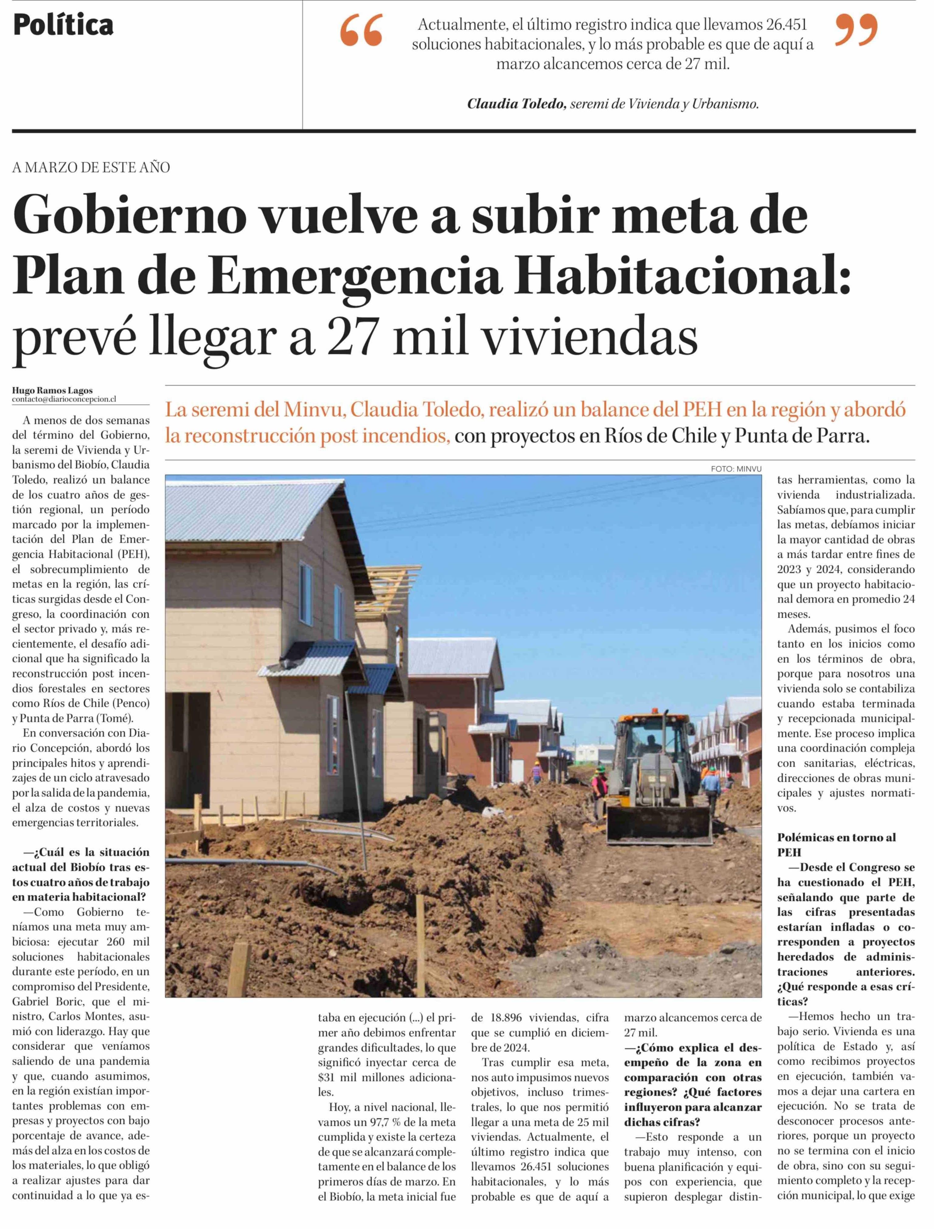Gobierno vuelve a subir meta de Plan de Emergencia Habitacional: prevé llegar a 27 mil viviendas