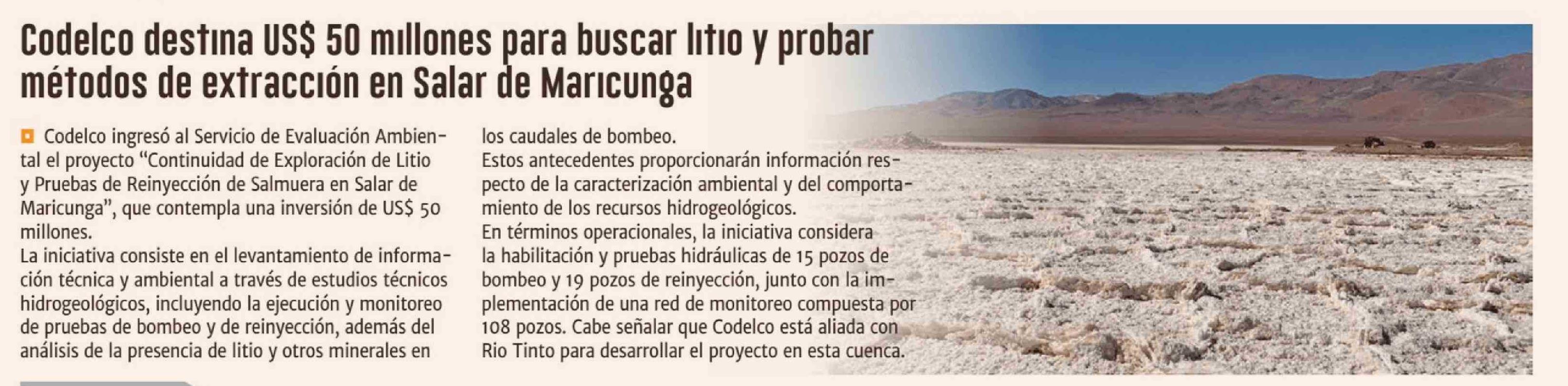 Codelco destina US$ 50 millones para buscar litio y probar métodos de extracción en Salar de Maricunga