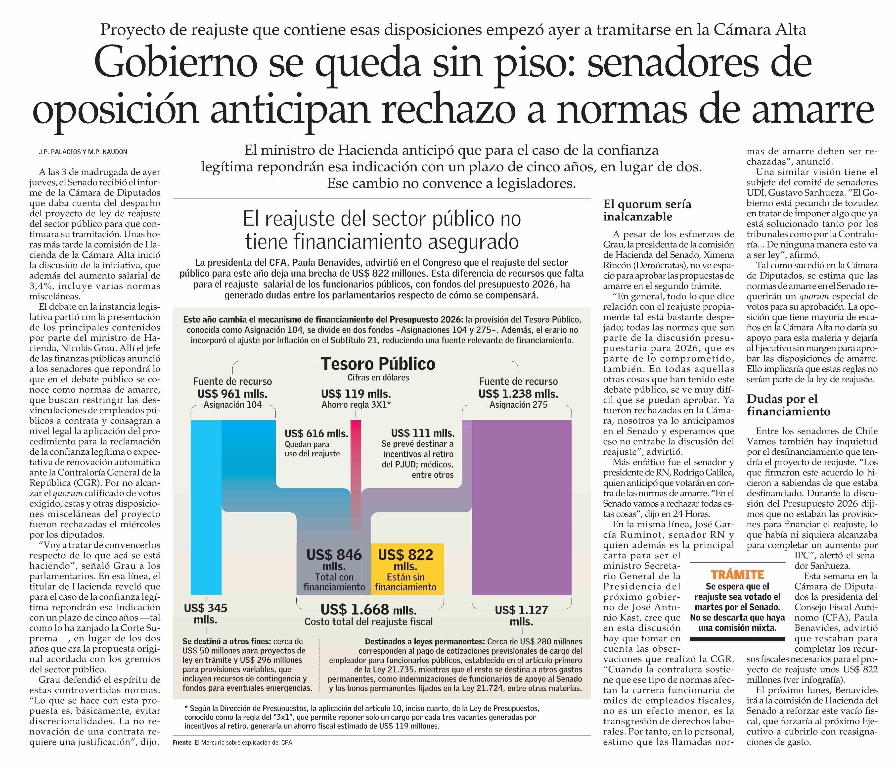 Gobierno se queda sin piso: senadores de oposición anticipan rechazo a normas de amarre