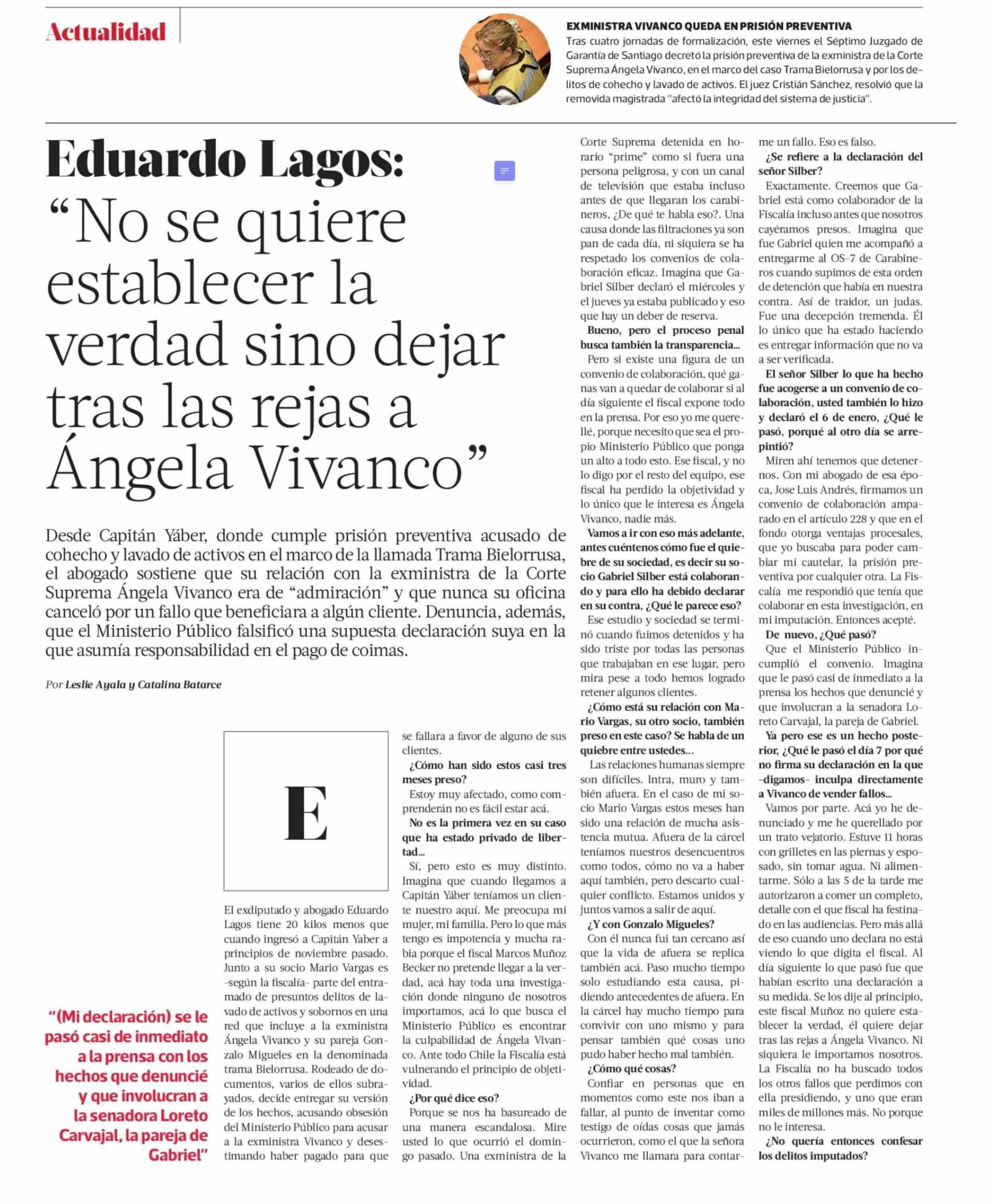 Eduardo Lagos: “No se quiere establecer la verdad sino dejar tras las rejas a Angela Vivanco”