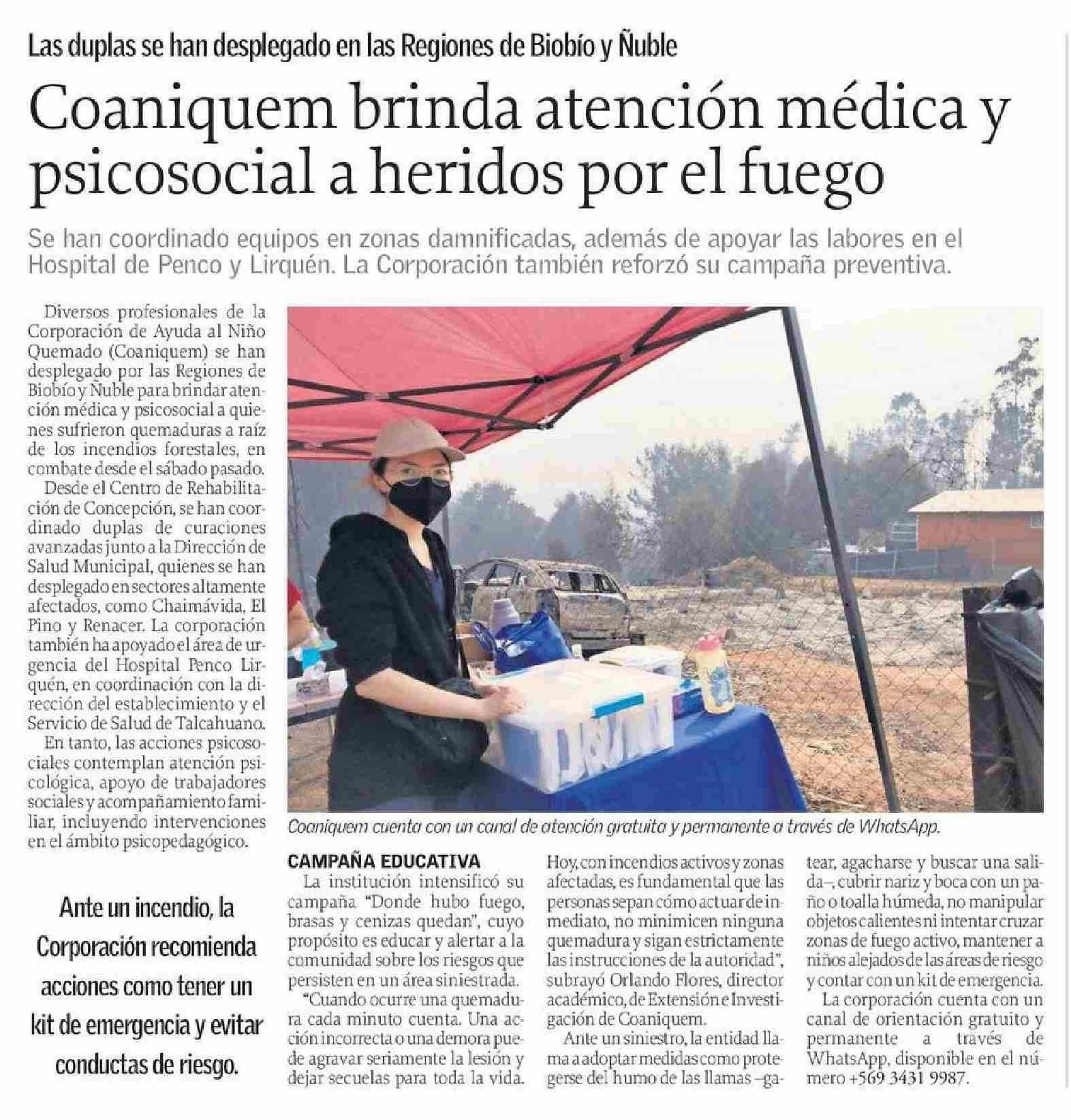 Coaniquem brinda atención médica y psicosocial a heridos por el fuego