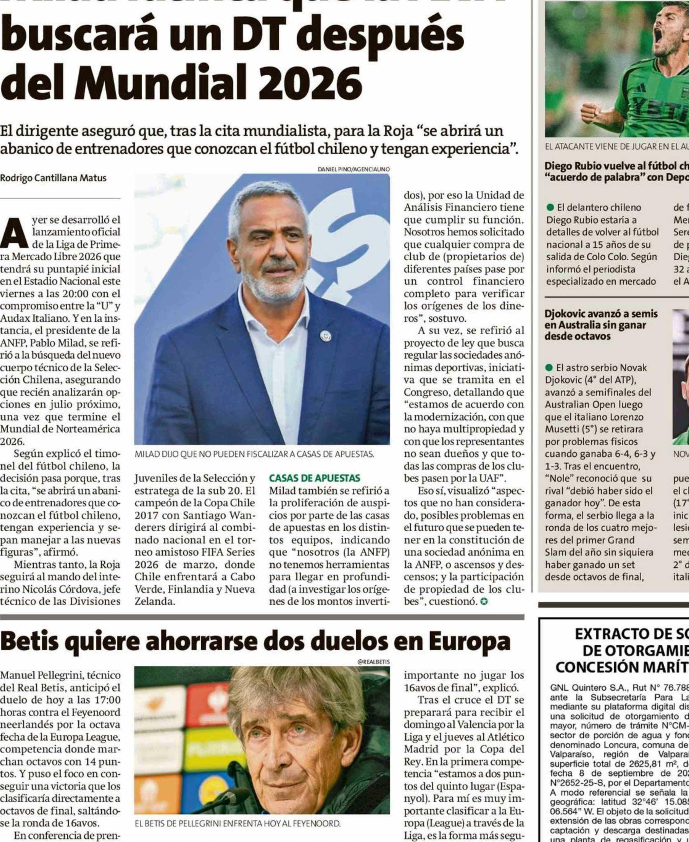 Milad ratifica que la ANFP buscará un DT después del Mundial 2026