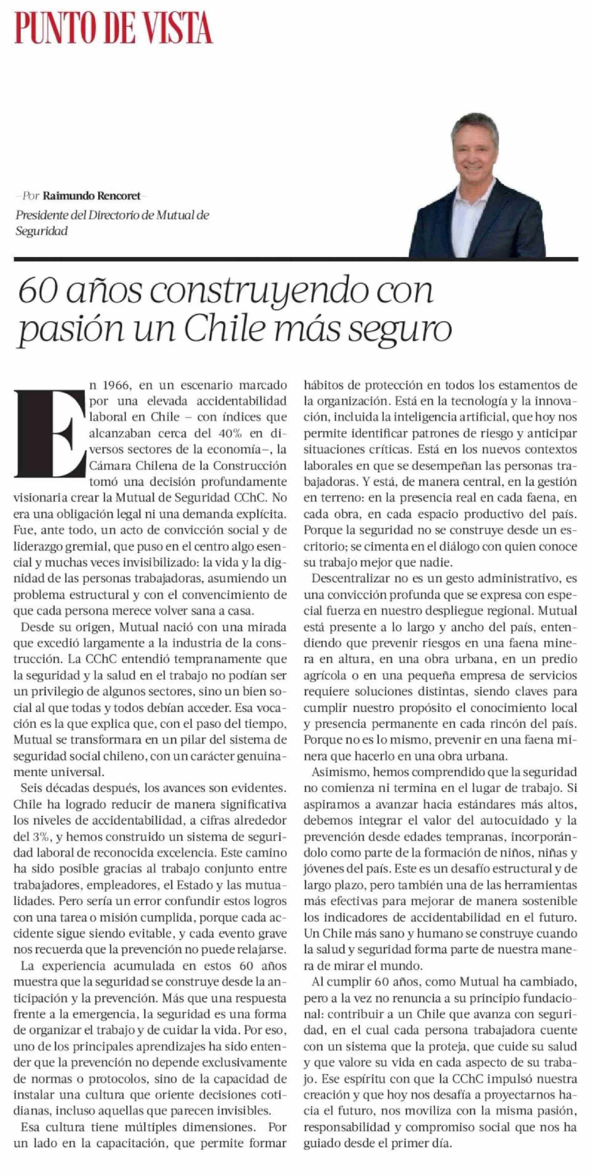 Columnas de Opinión: 60 Años construyendo con pasión un Chile más seguro