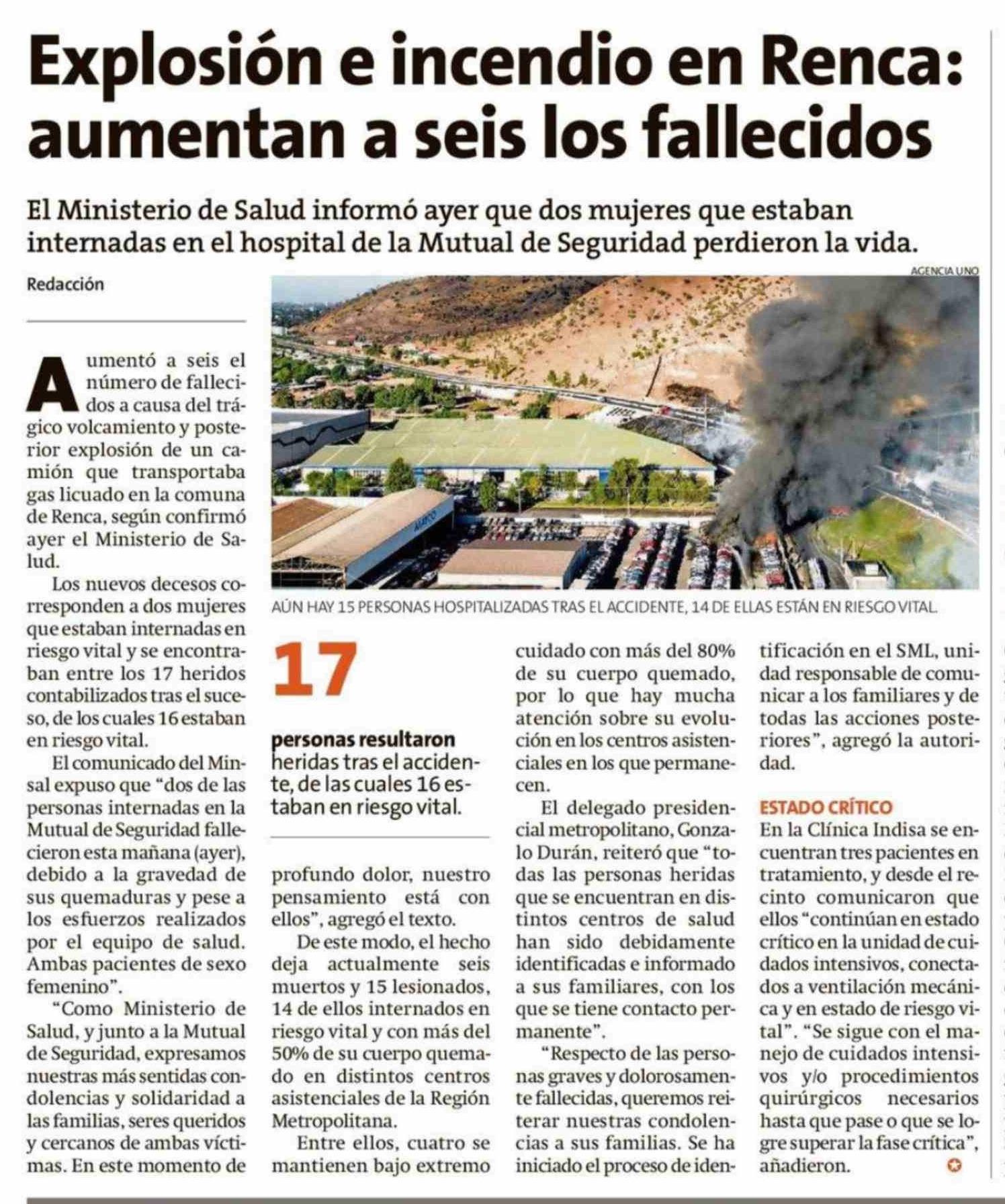 Explosión e incendio en Renca: aumentan a seis los fallecidos