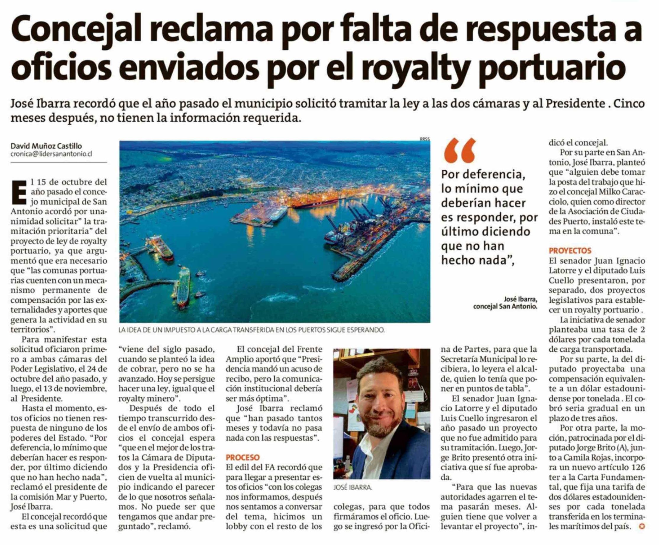Concejal reclama por falta de respuesta a oficios enviados por el royalty portuario
