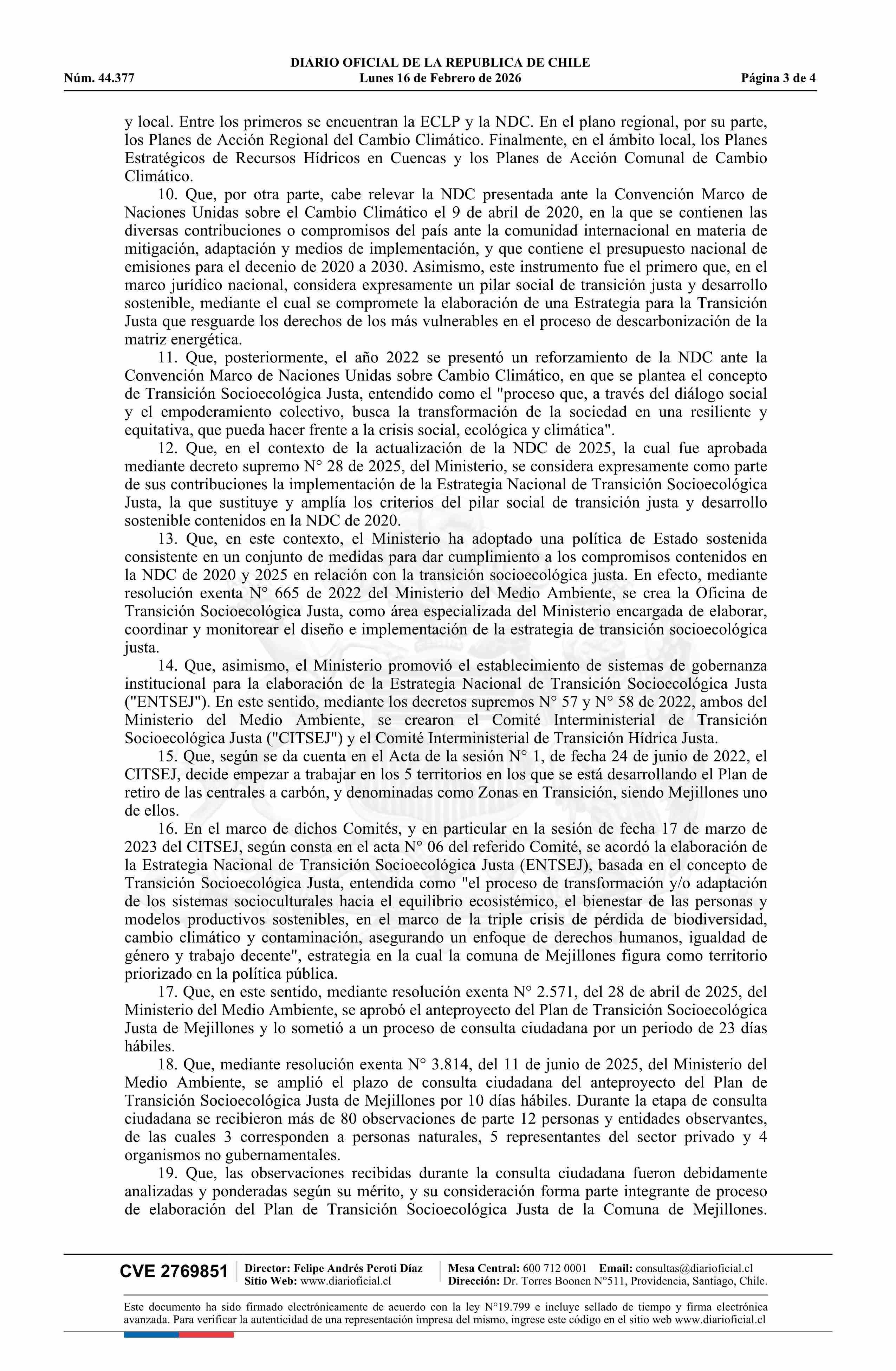 | Título: | Resolución exenta número 715, de 2026.- Aprueba el Plan de Transición Socioecológica Justa de la Comuna de Mejillones |