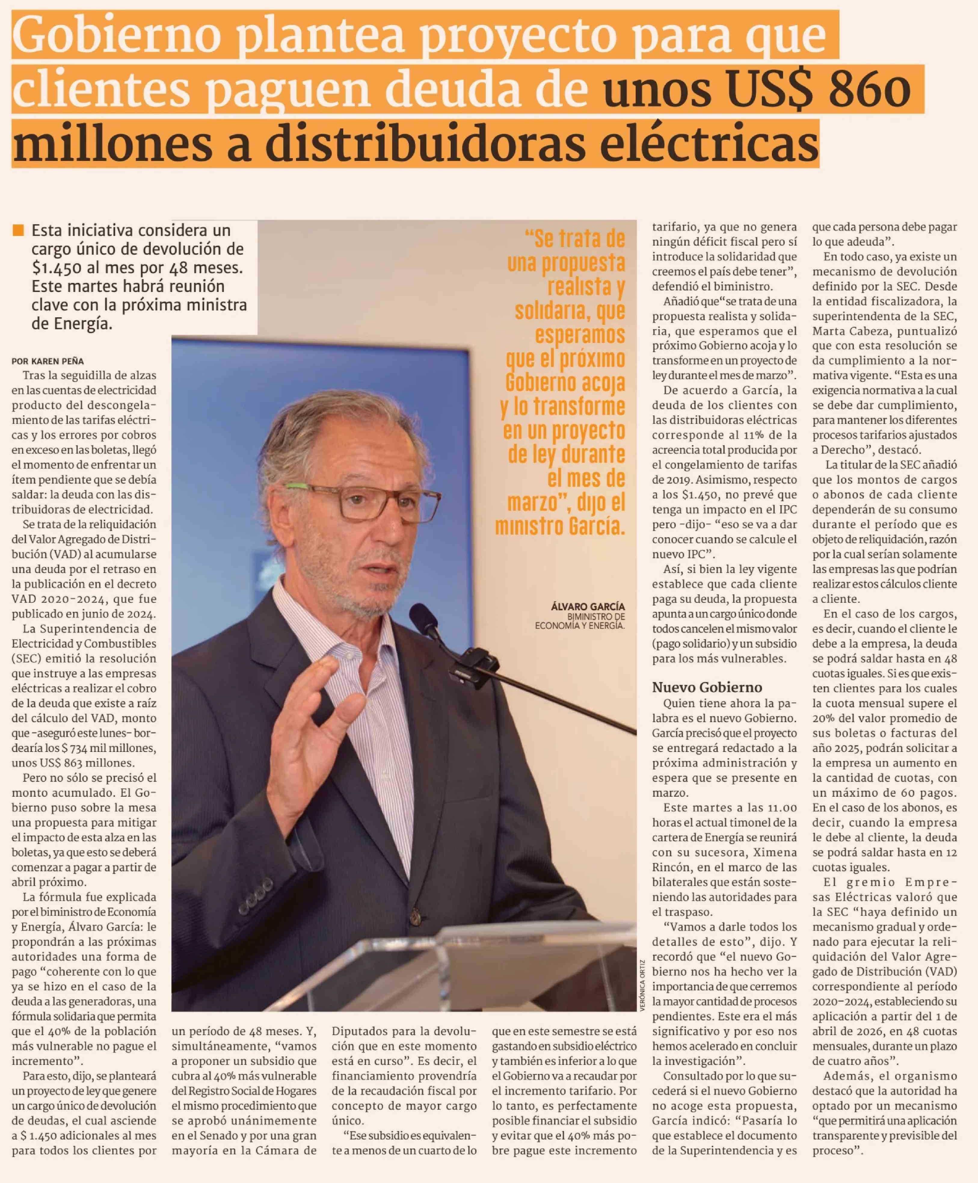Gobierno plantea proyecto para que clientes paguen deuda de unos US$ 860 millones a distribuidoras eléctricas