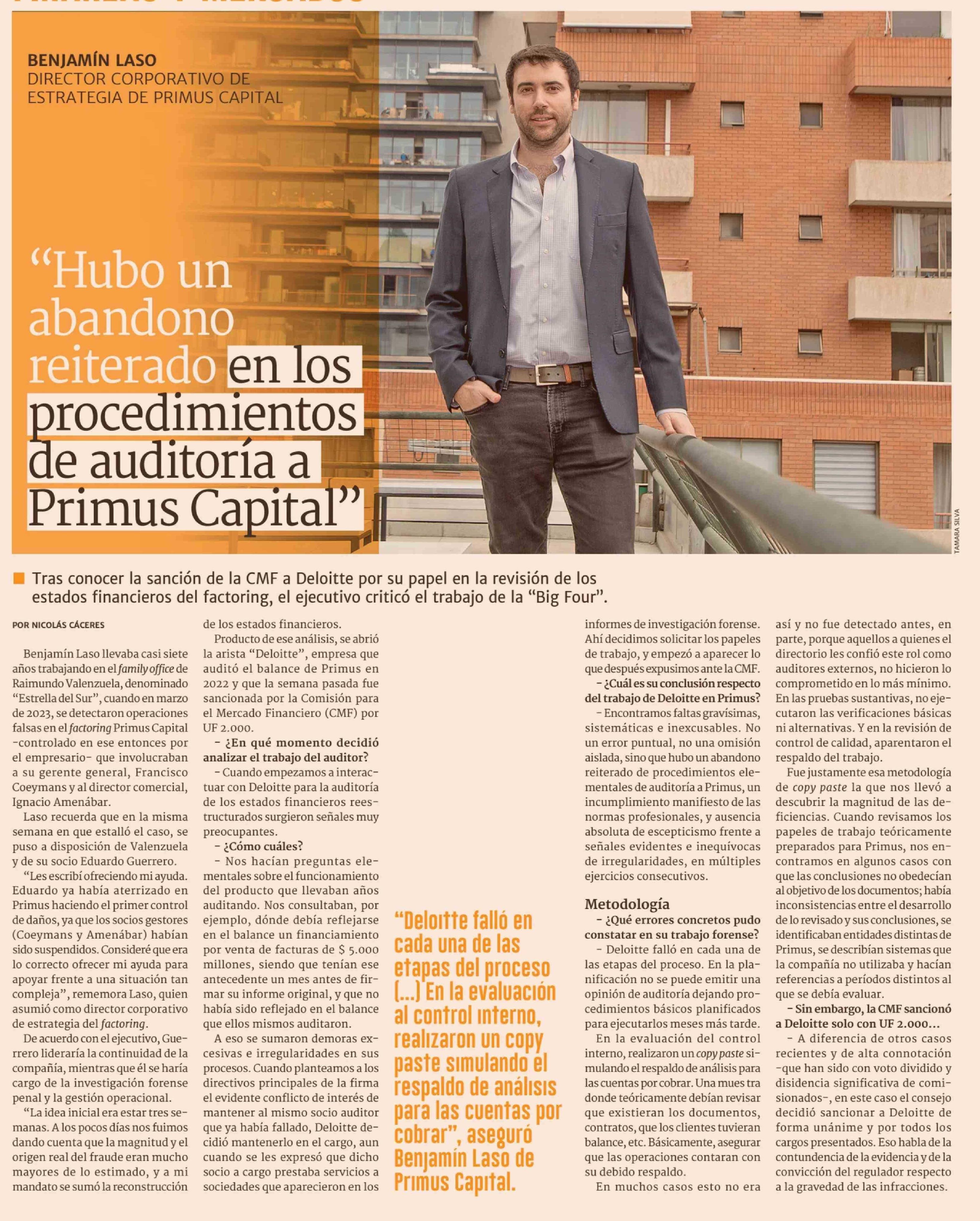 "Hubo un abandono reiterado en los procedimientos de auditoría a Primus Capital"