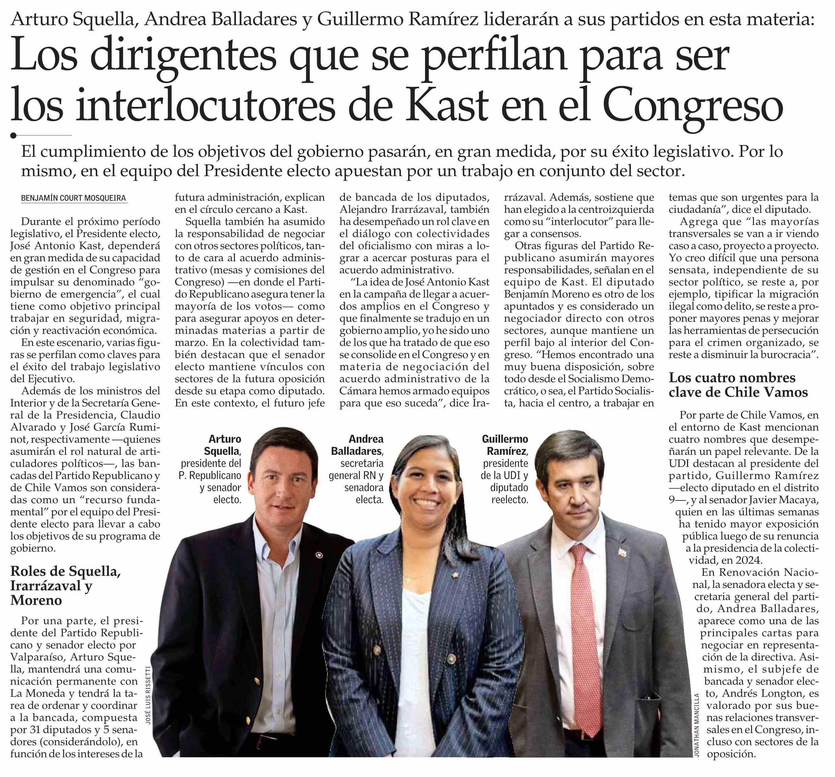 Los dirigentes que se perfilan para ser los interlocutores de Kast en el Congreso