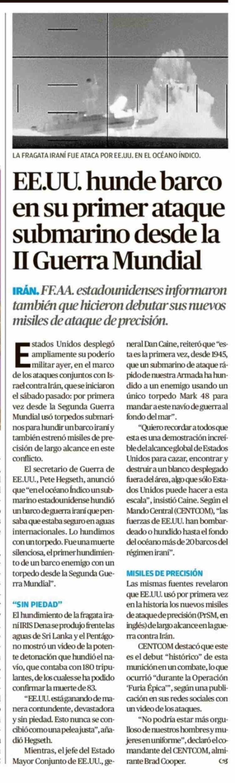 EE.UU. hunde barco en su primer ataque submarino desde la II Guerra Mundial