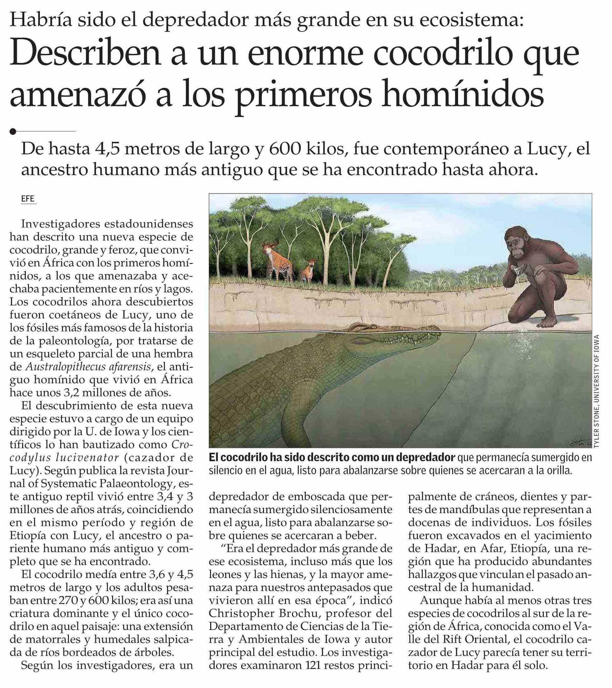 Describen a un enorme cocodrilo que amenazó a los primeros homínidos