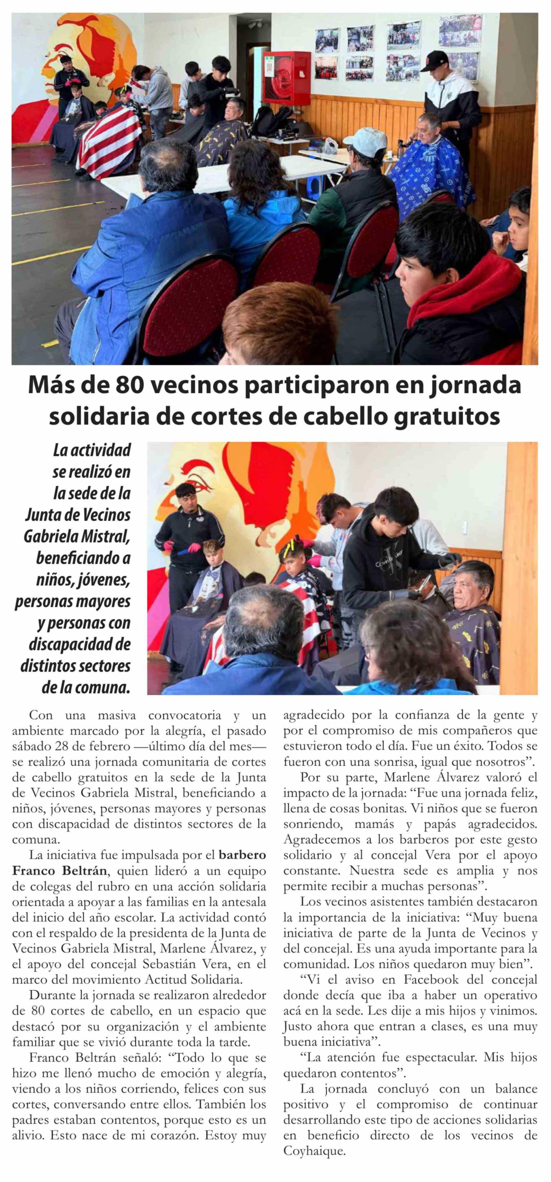 Columnas de Opinión: Más de 80 vecinos participaron en jornada solidaria de cortes de cabello gratuitos