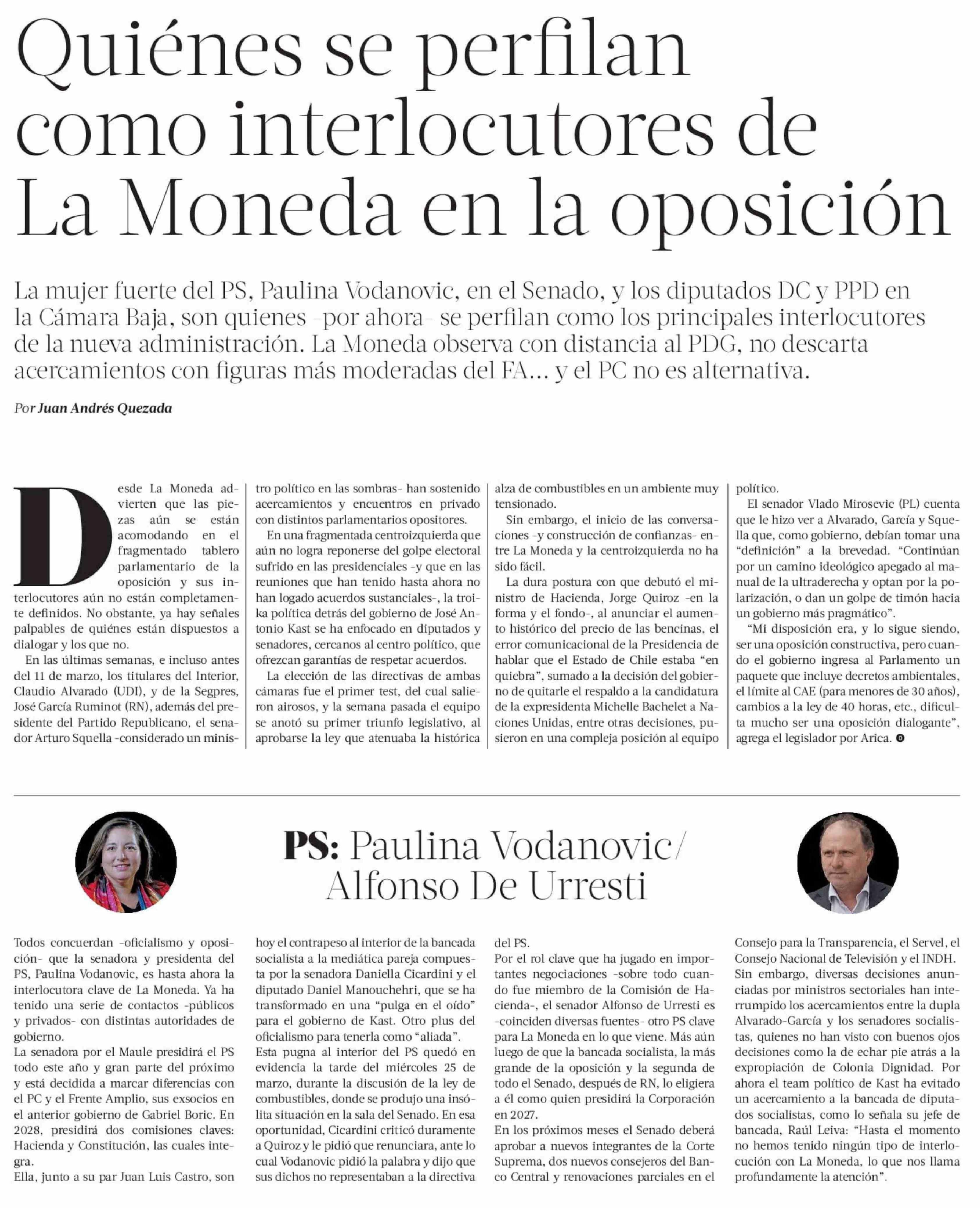 Título: Quiénes se perfilan como interlocutores de La Moneda en la oposición