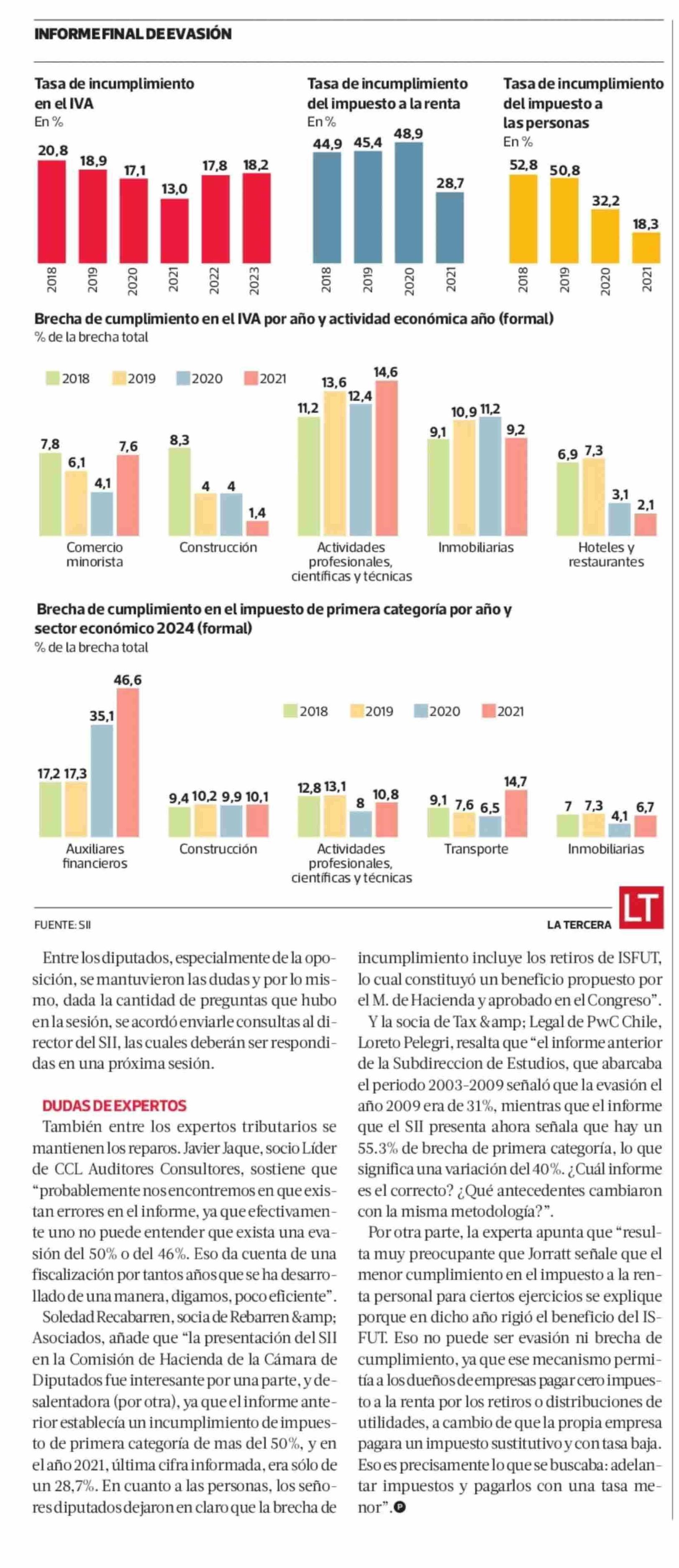Informe final del SII determina que la evasión del impuesto a las empresas es de 46,4%. y lideran las sociedades de inversión
