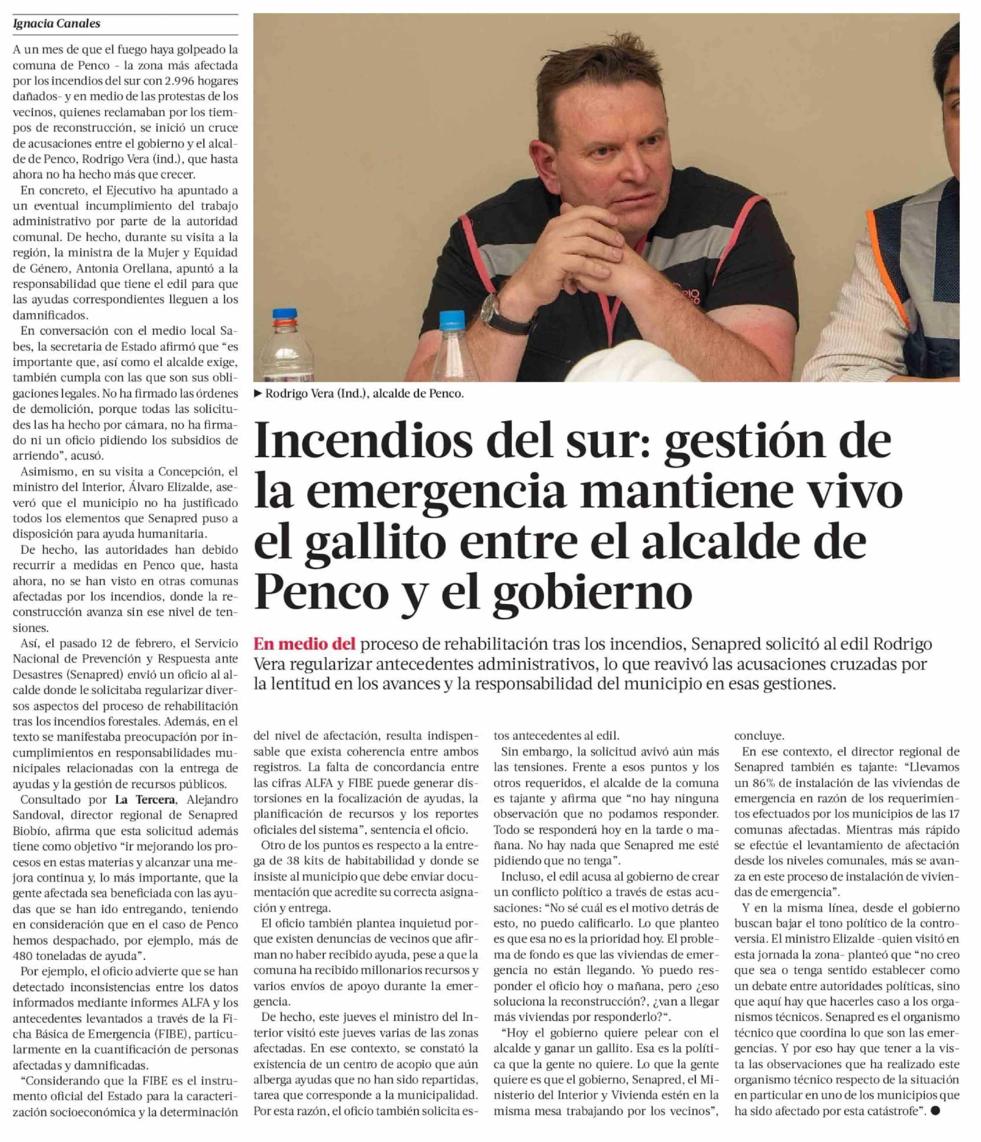 Incendios del sur: gestión de la emergencia mantiene vivo el gallito entre el alcalde de Penco y el gobierno