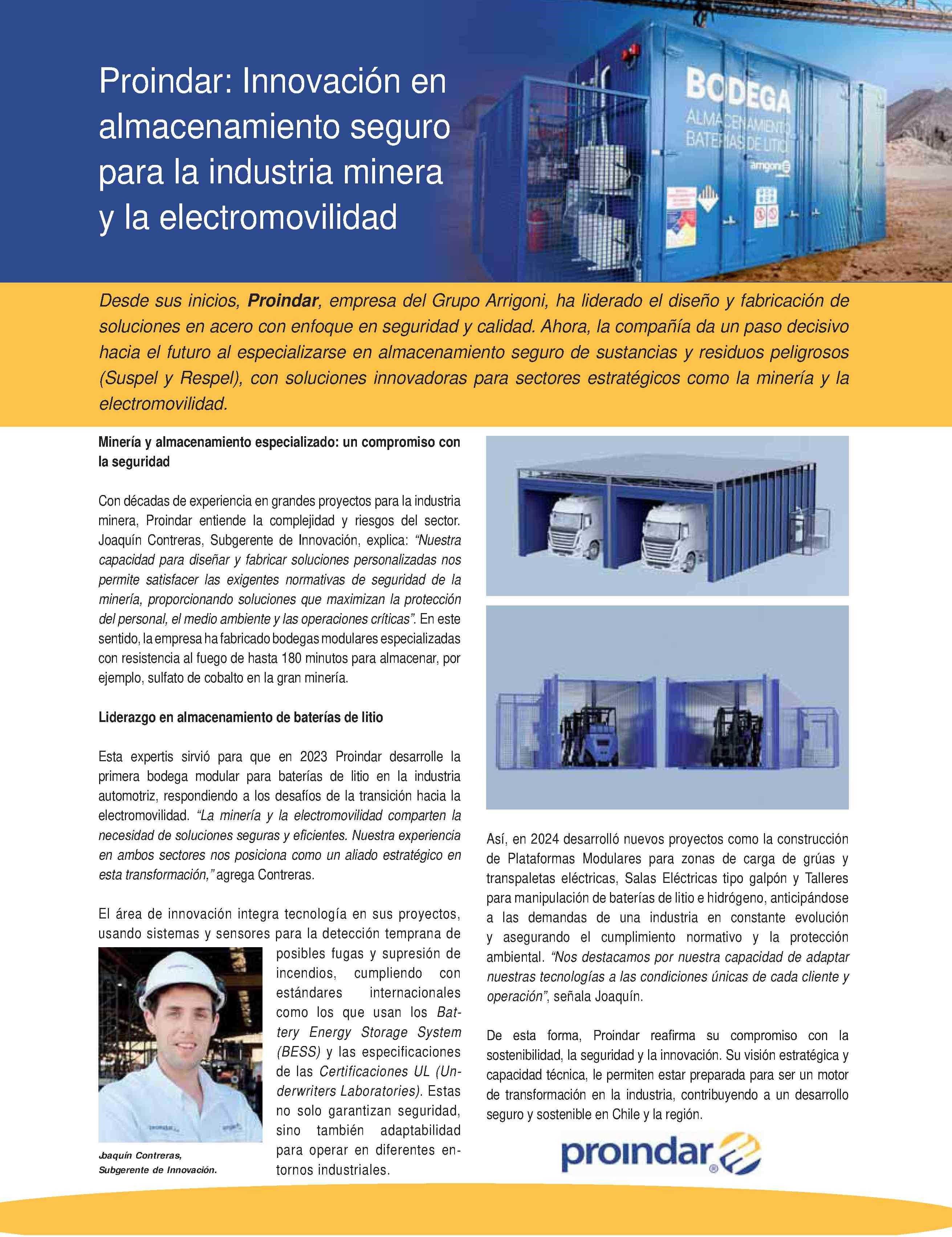 Proindar: Innovación en almacenamiento seguro para la industria minera y la electromovilidad