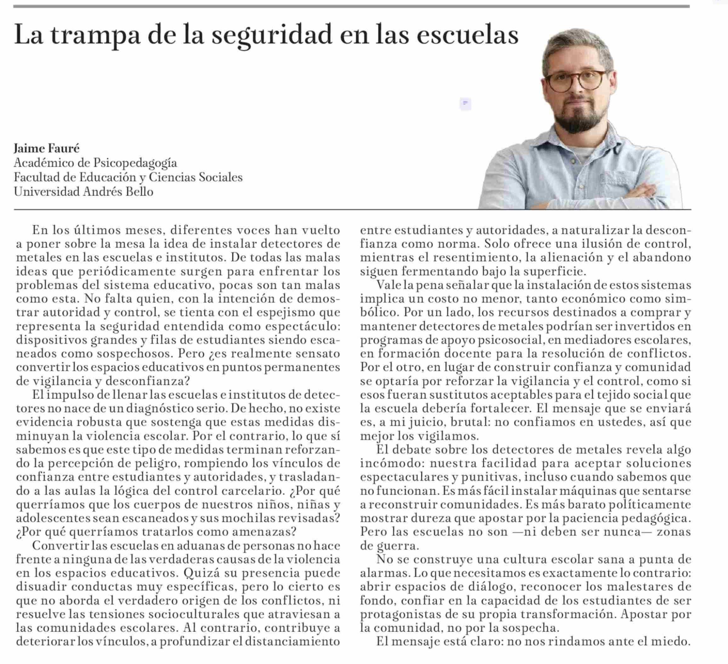 COLUMNAS DE OPINIÓN: La trampa de la seguridad en las escuelas