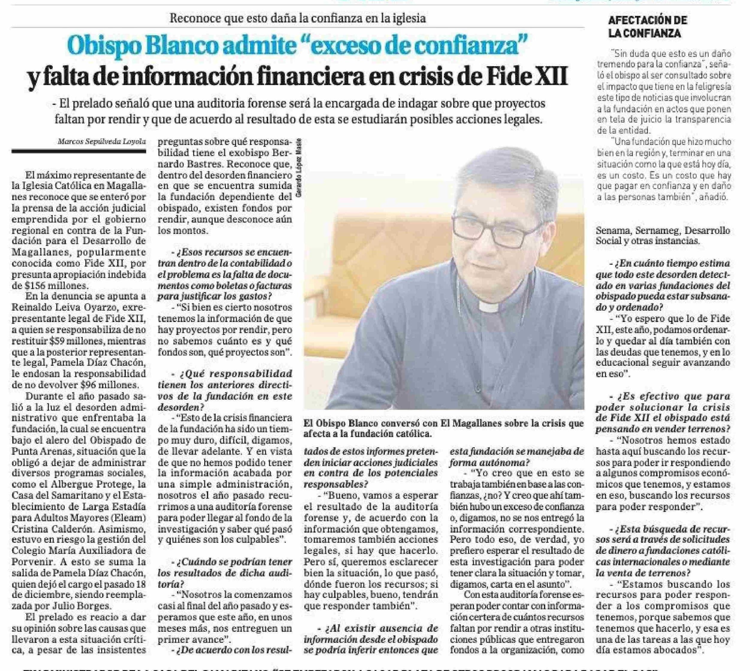Obispo Blanco admite "exceso de confianza' y falta de información financiera en crisis de Fide XII