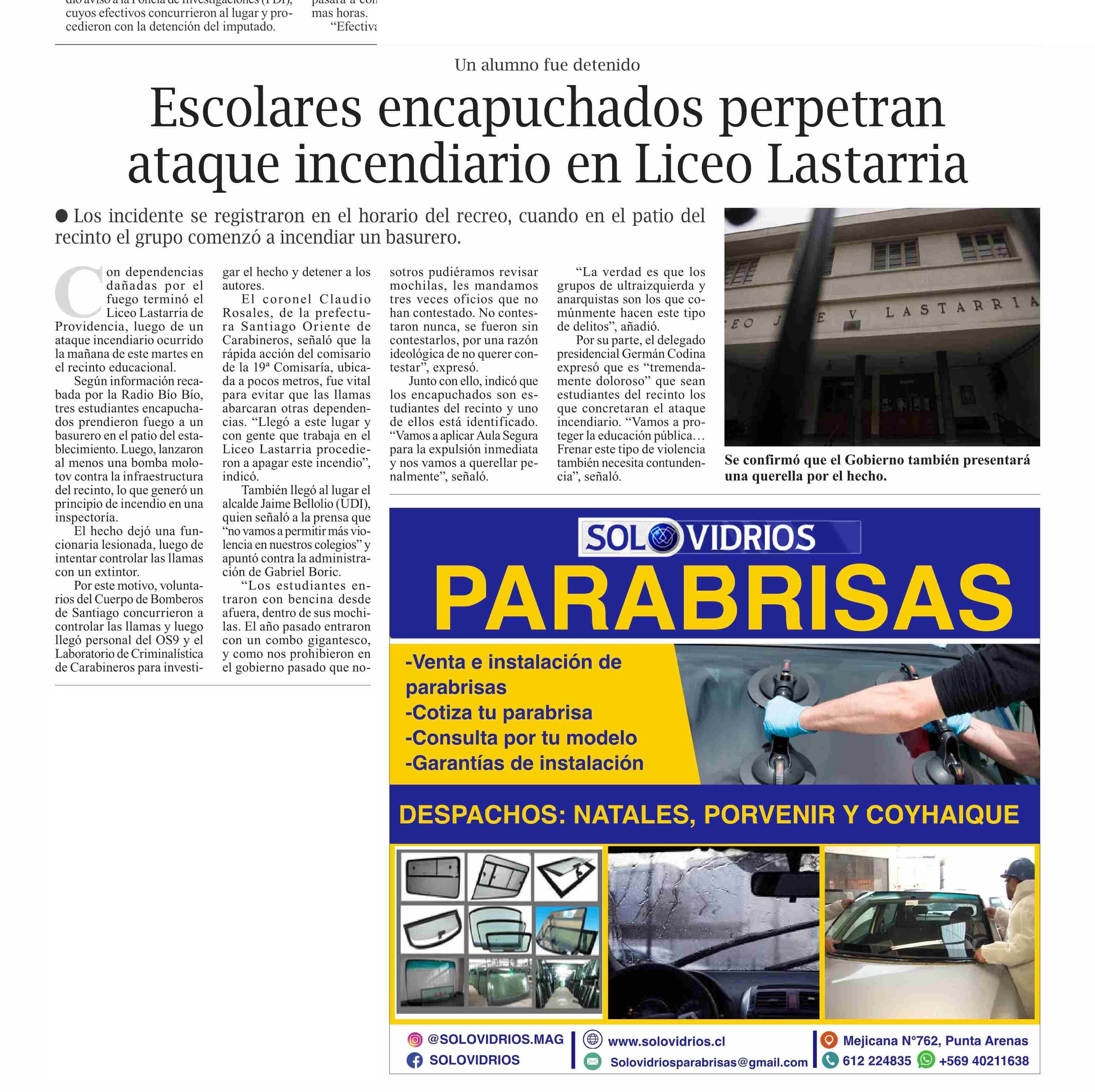 Escolares encapuchados perpetran ataque incendiario en Liceo Lastarria