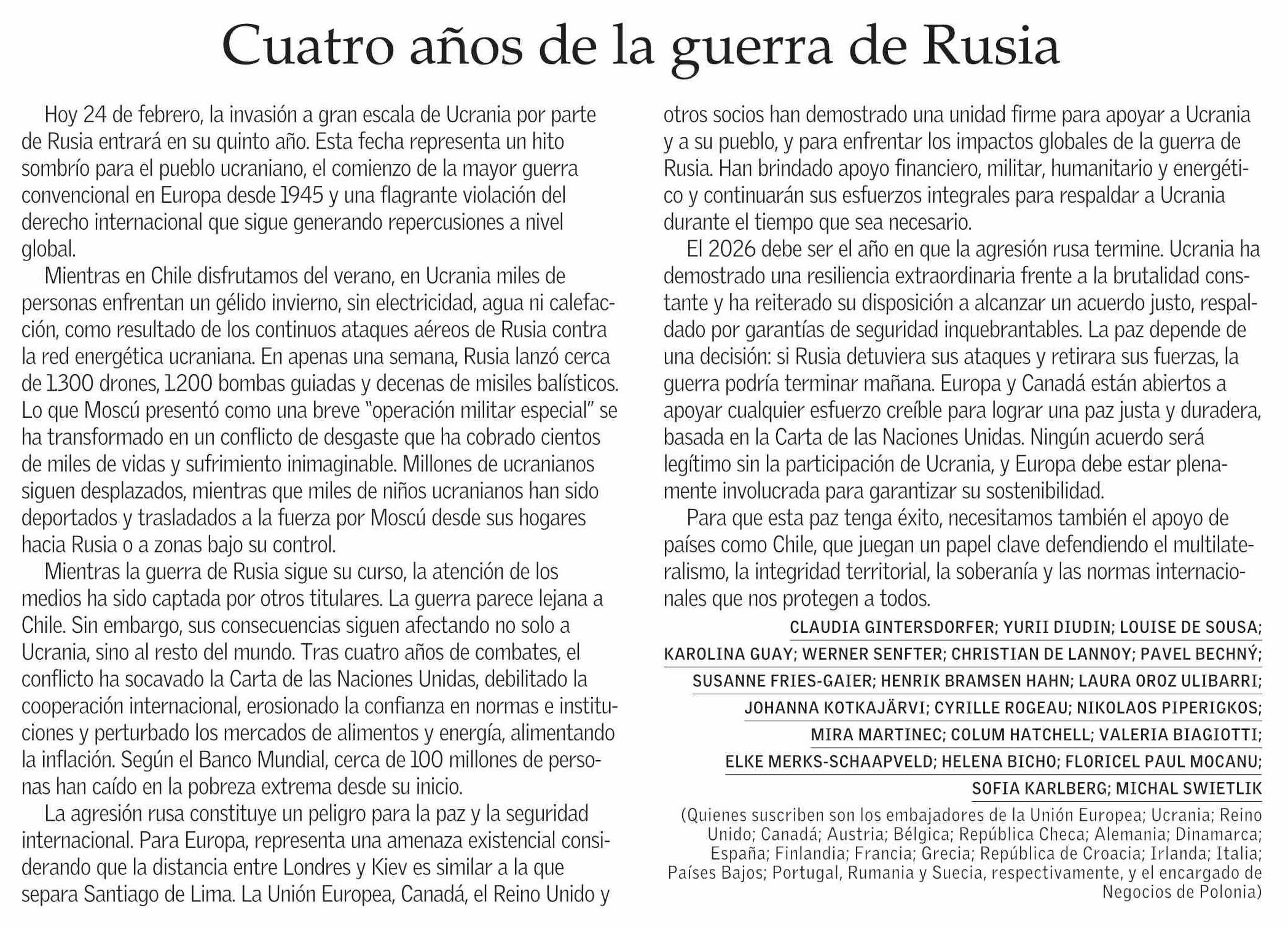 Columnas de Opinión: Cuatro años de la guerra de Rusia
