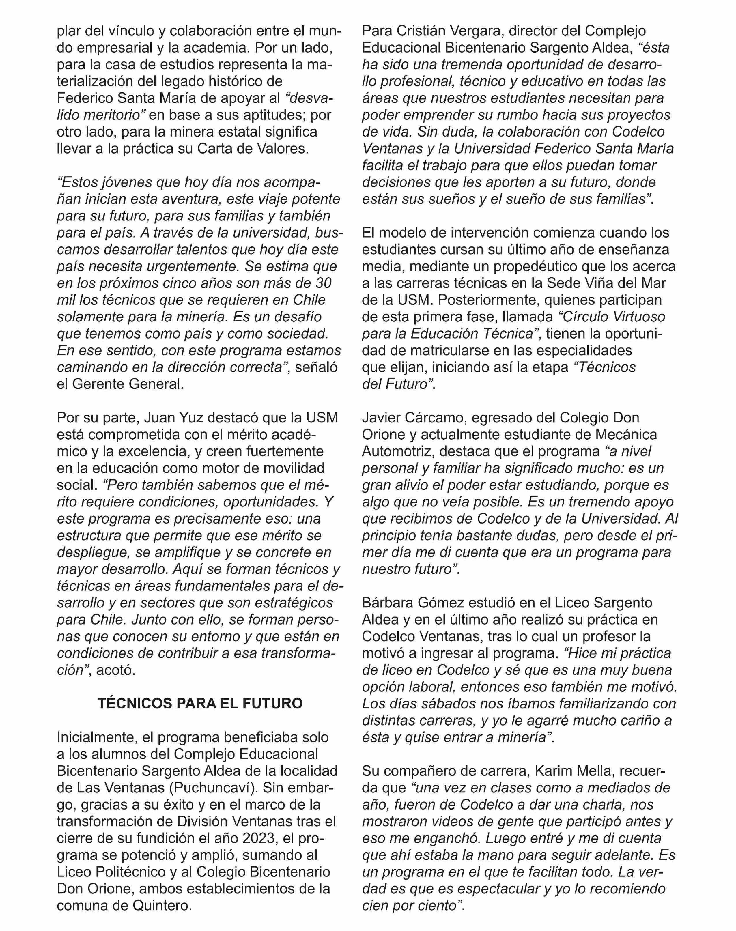 | Título: | Alianza entre Codelco Ventanas y USM impulsa ingreso a la educación superior de jóvenes de Quintero y Puchuncaví |