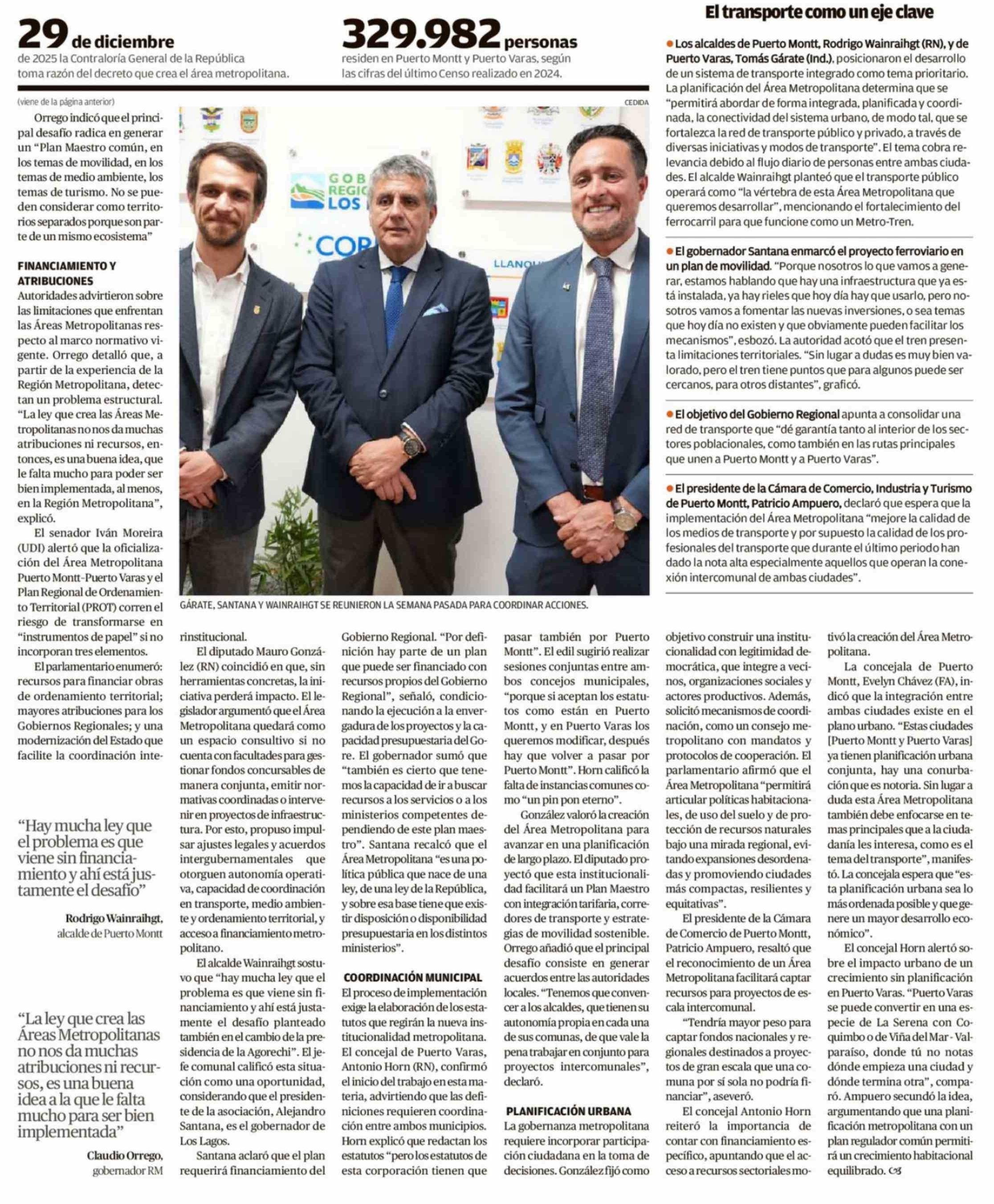 Área Metropolitana Puerto MonttPuerto Varas: autoridades exigen recursos para evitar "ley de papel"