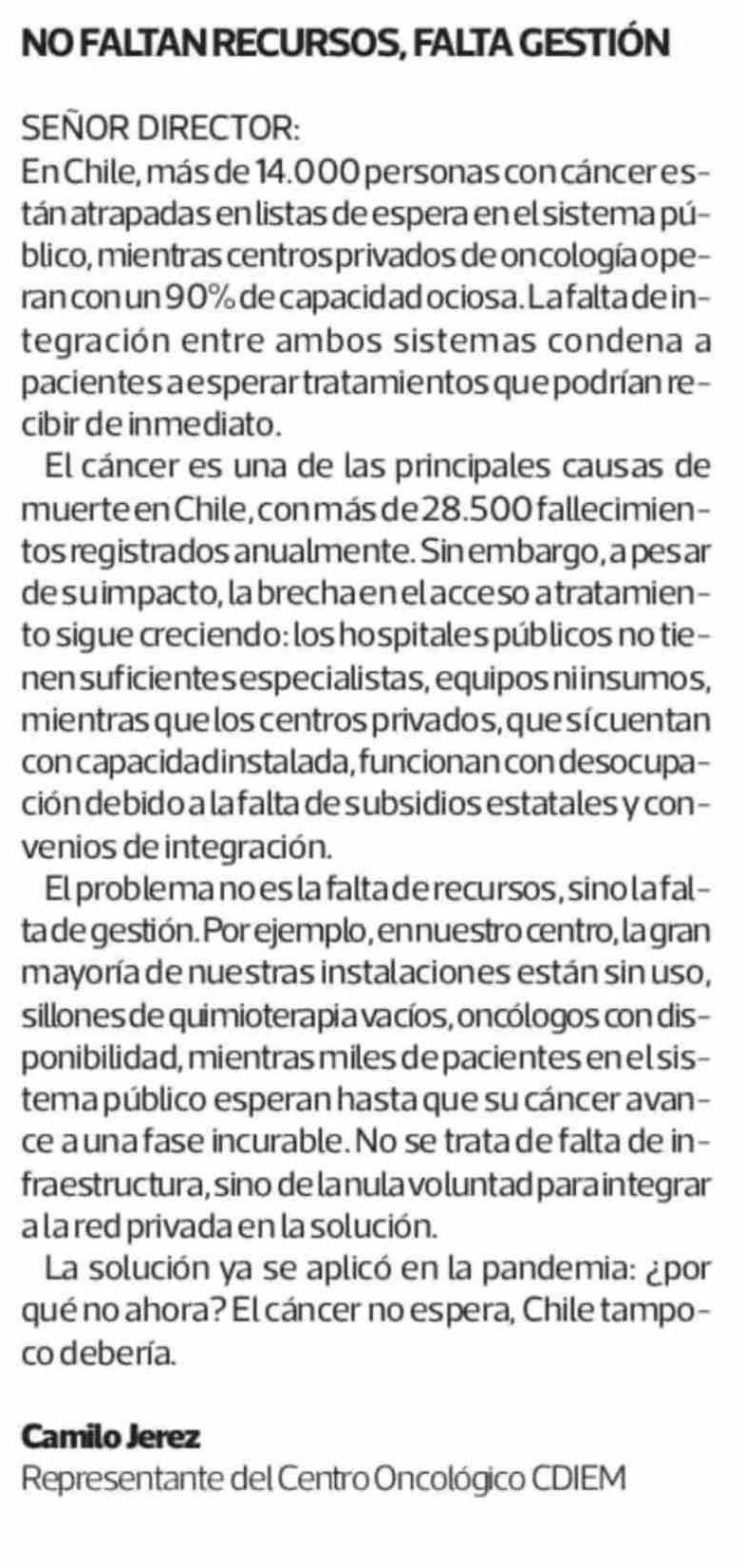 CARTAS: NO FALTAN RECURSOS, FALTA GESTIÓN