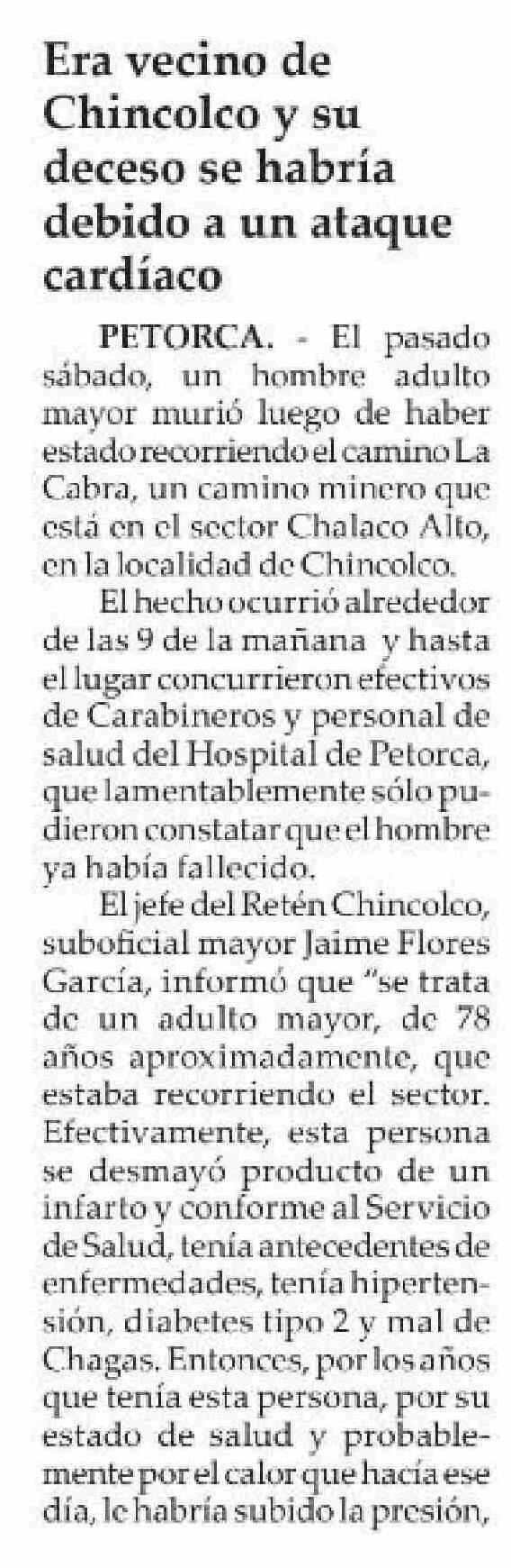 Era vecino de Chincolco y su deceso se habría debido a un ataque cardíaco