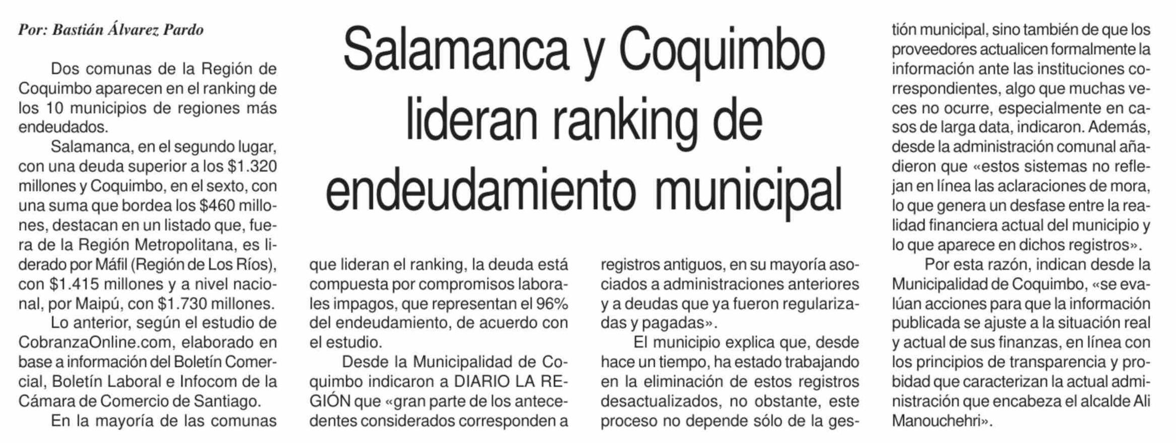 Salamanca y Coquimbo lideran ranking de endeudamiento municipal