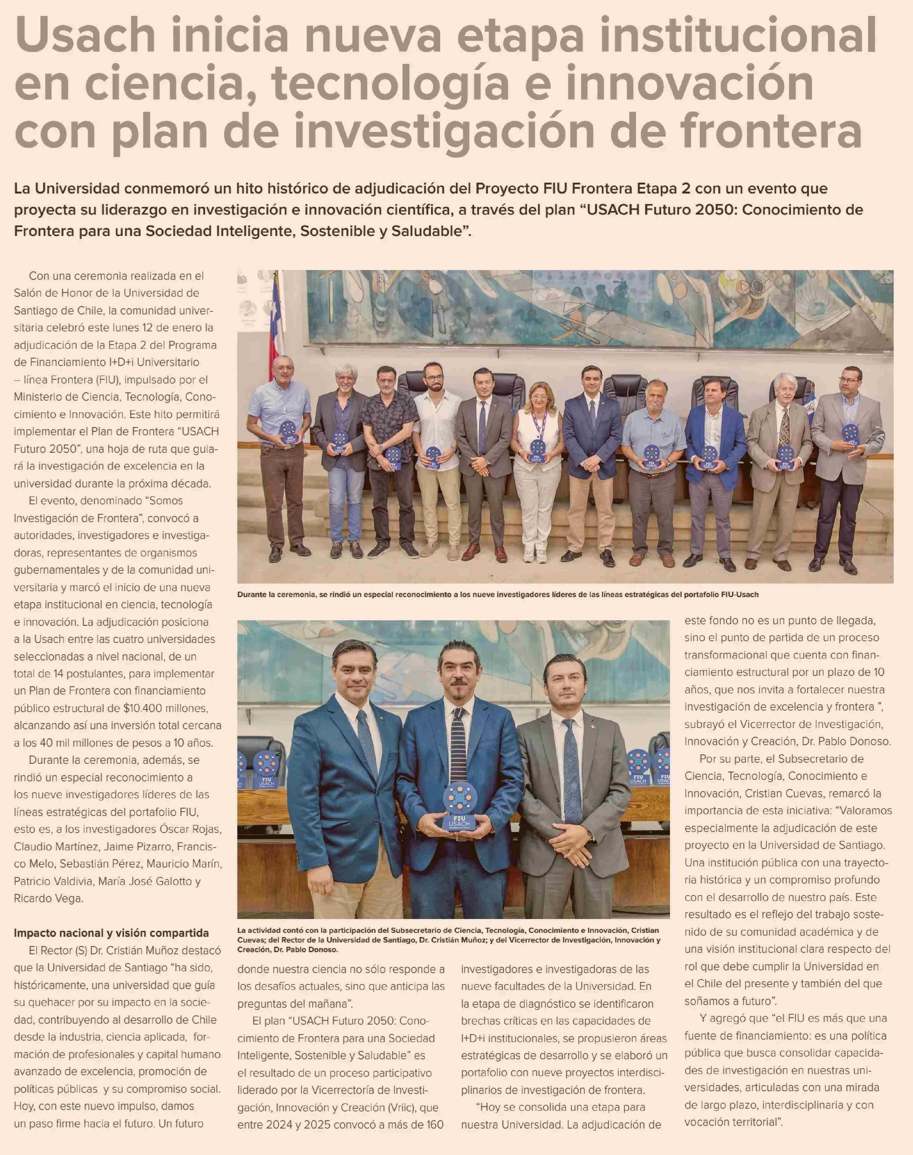 Usach inicia nueva etapa institucional en ciencia, tecnología e innovación con plan de investigación de frontera