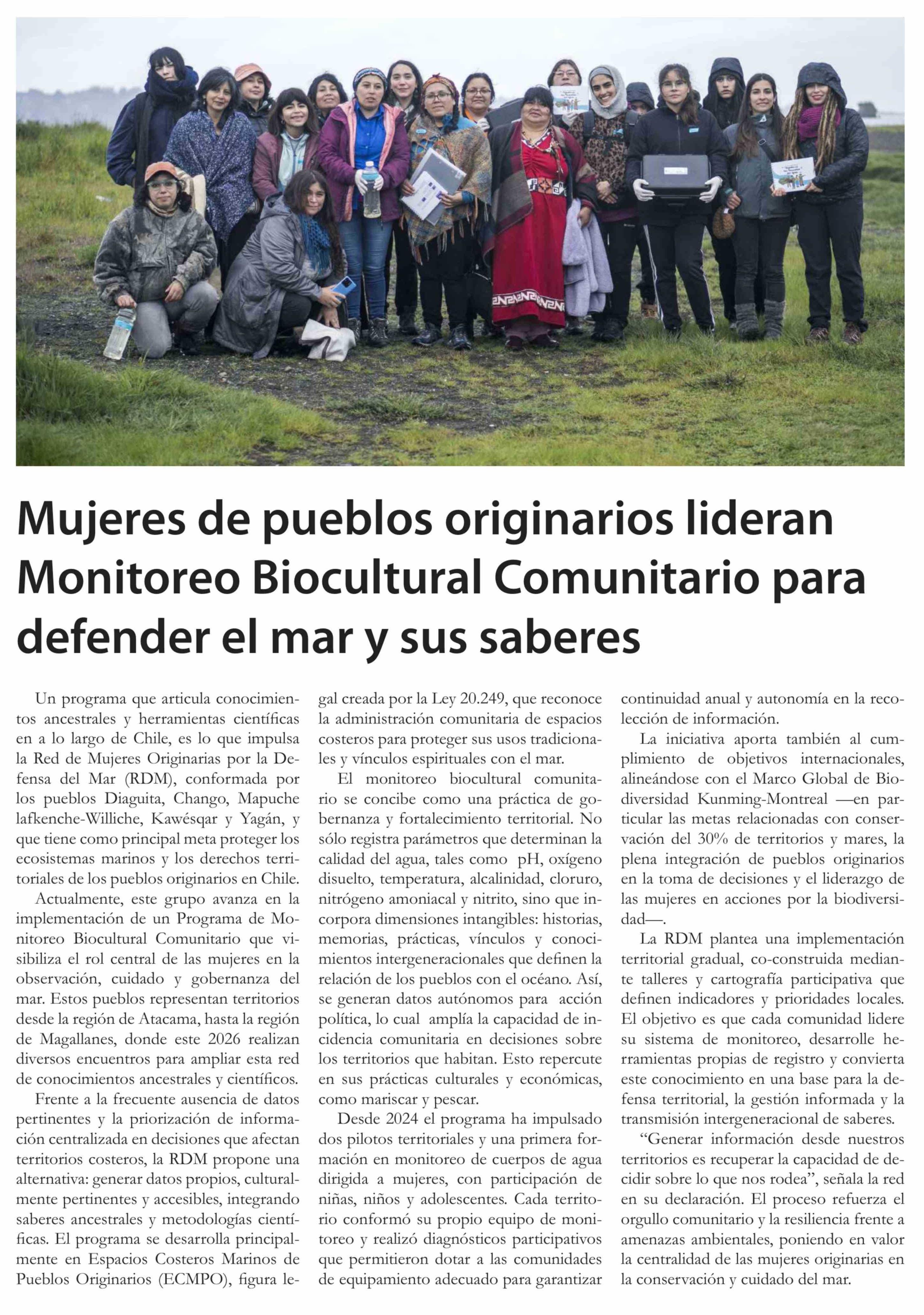 Mujeres de pueblos originarios lideran Monitoreo Biocultural Comunitario para defender el mar y sus saberes