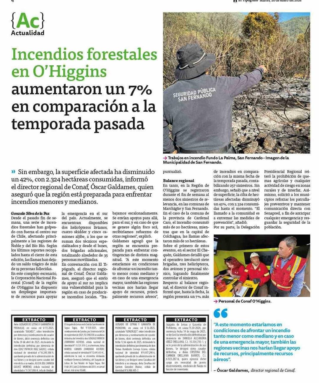 Incendios forestales en O'Higgins aumentaron un 7% en comparación a la temporada pasada