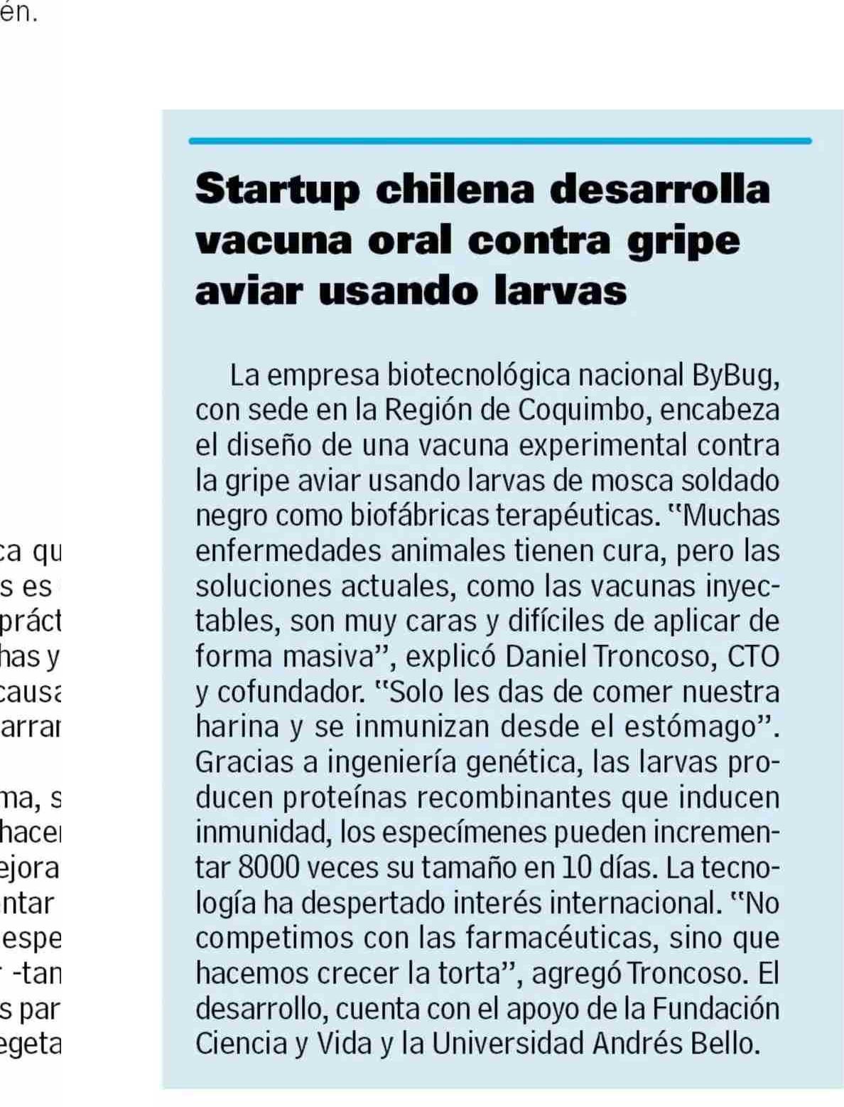 Startup chilena desarrolla vacuna oral contra gripe aviar usando larvas