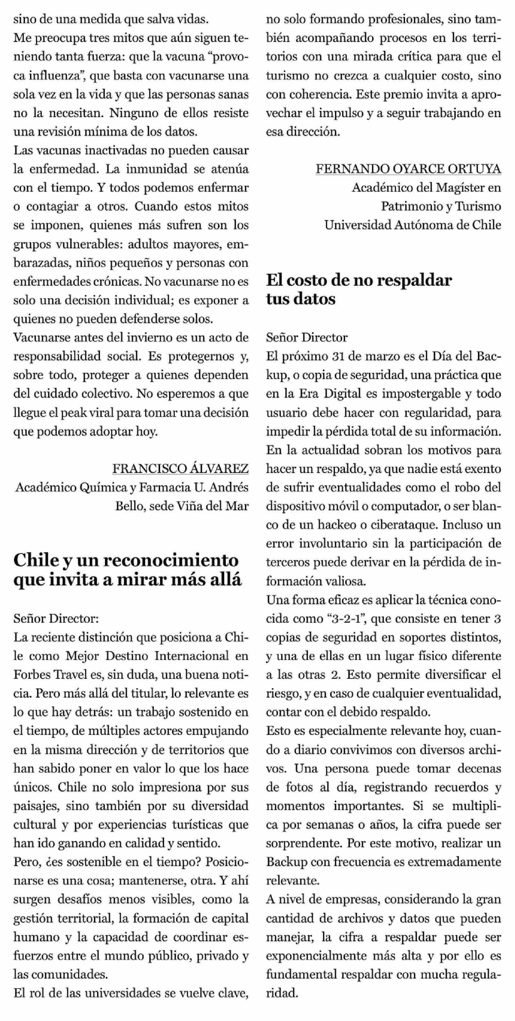 Cartas: Chile y un reconocimiento que invita a mirar más allá