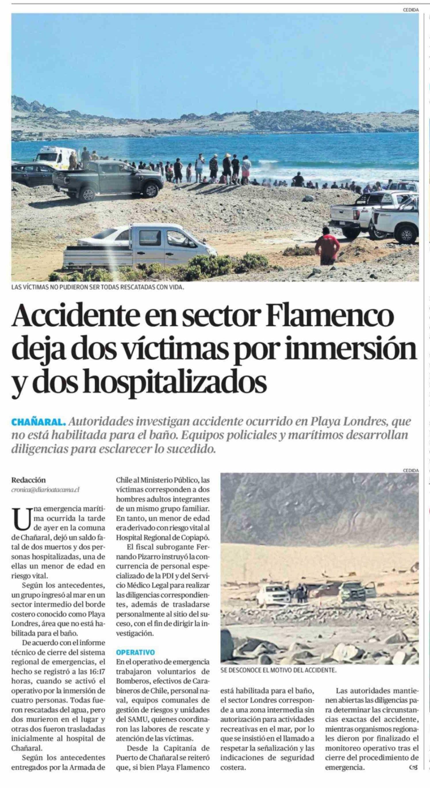 Accidente en sector Flamenco deja dos víctimas por inmersión y dos hospitalizados