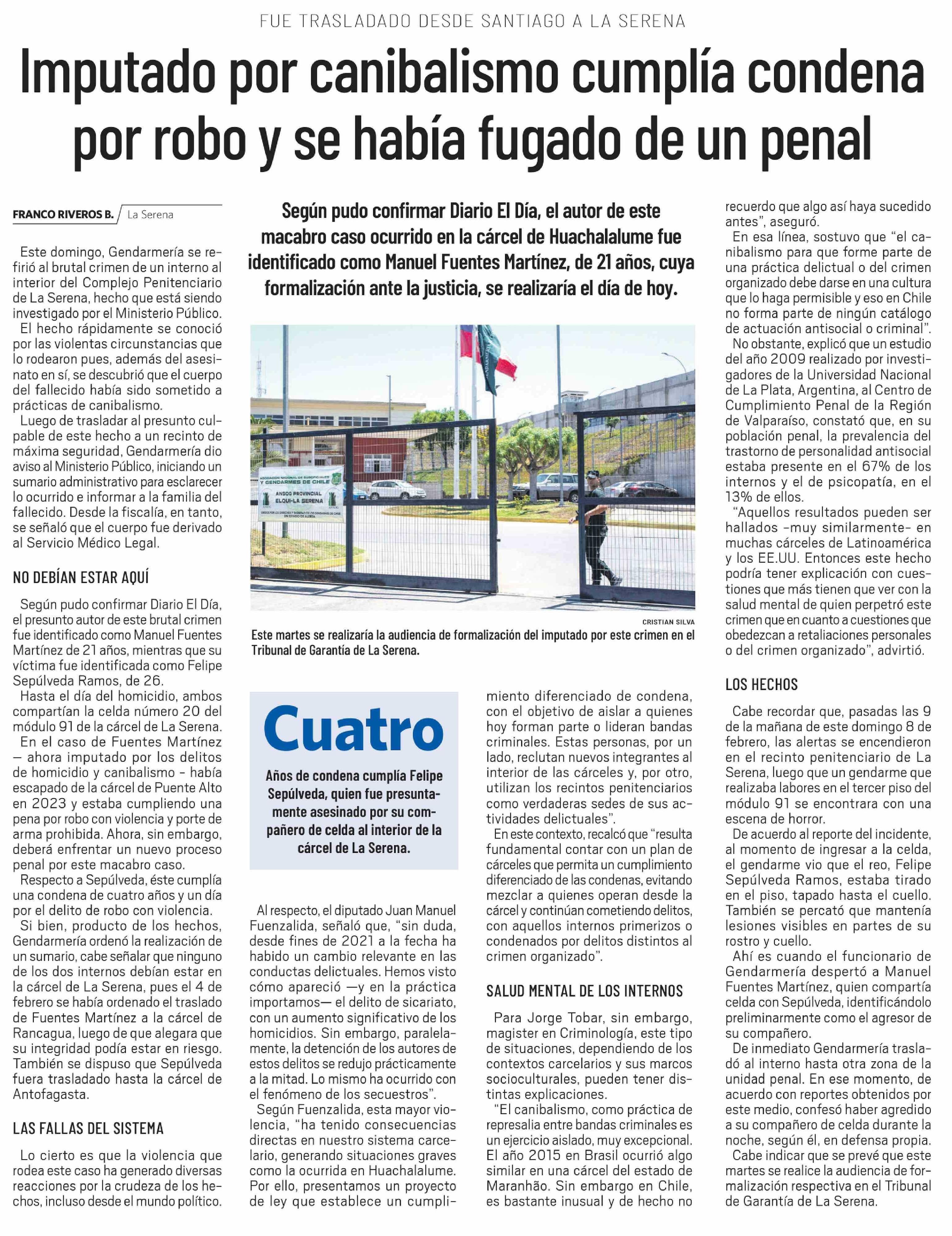 Imputado por canibalismo cumplía condena por robo y se había fugado de un penal
