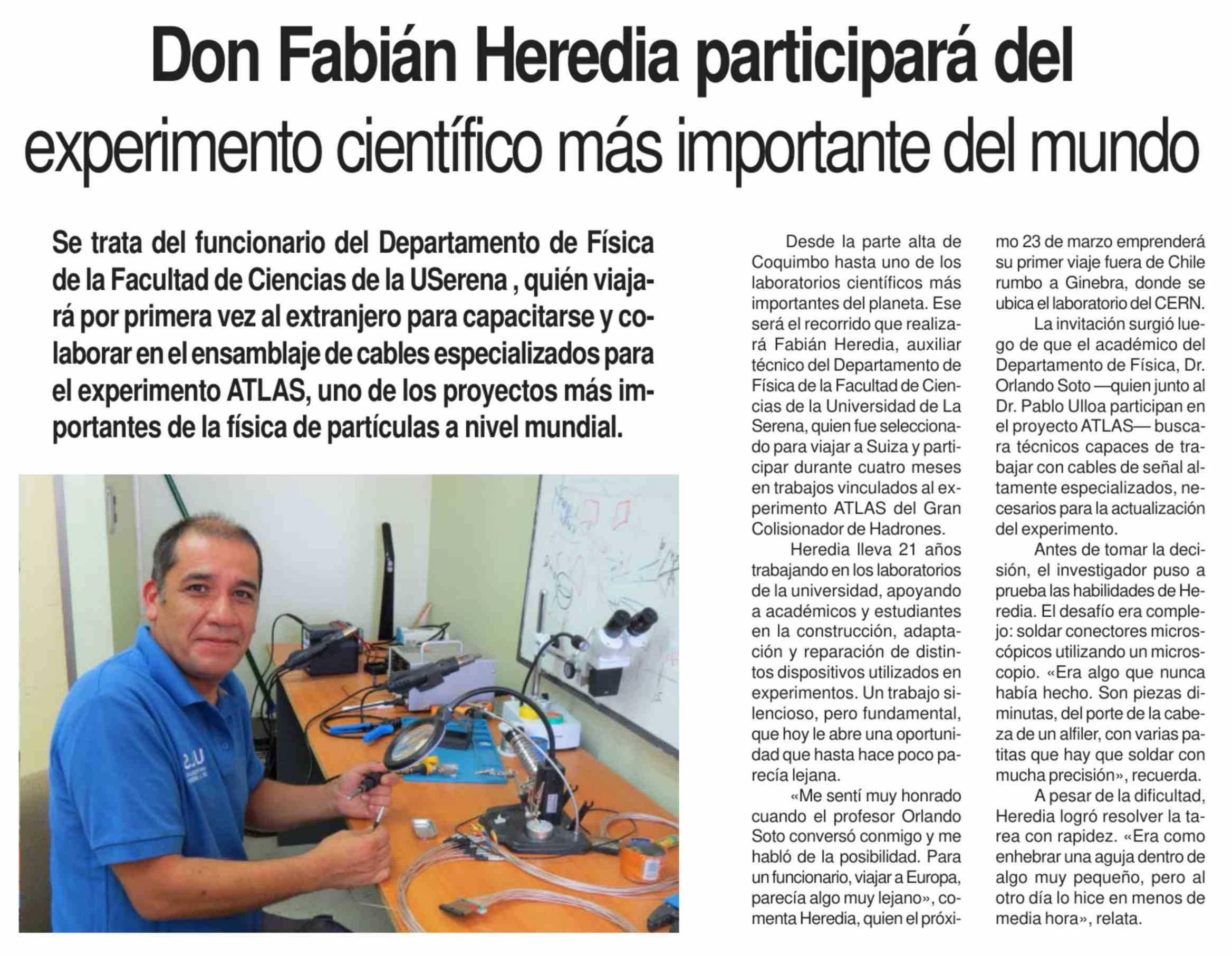 Don Fabián Heredia participará del experimento científico más importante del mundo