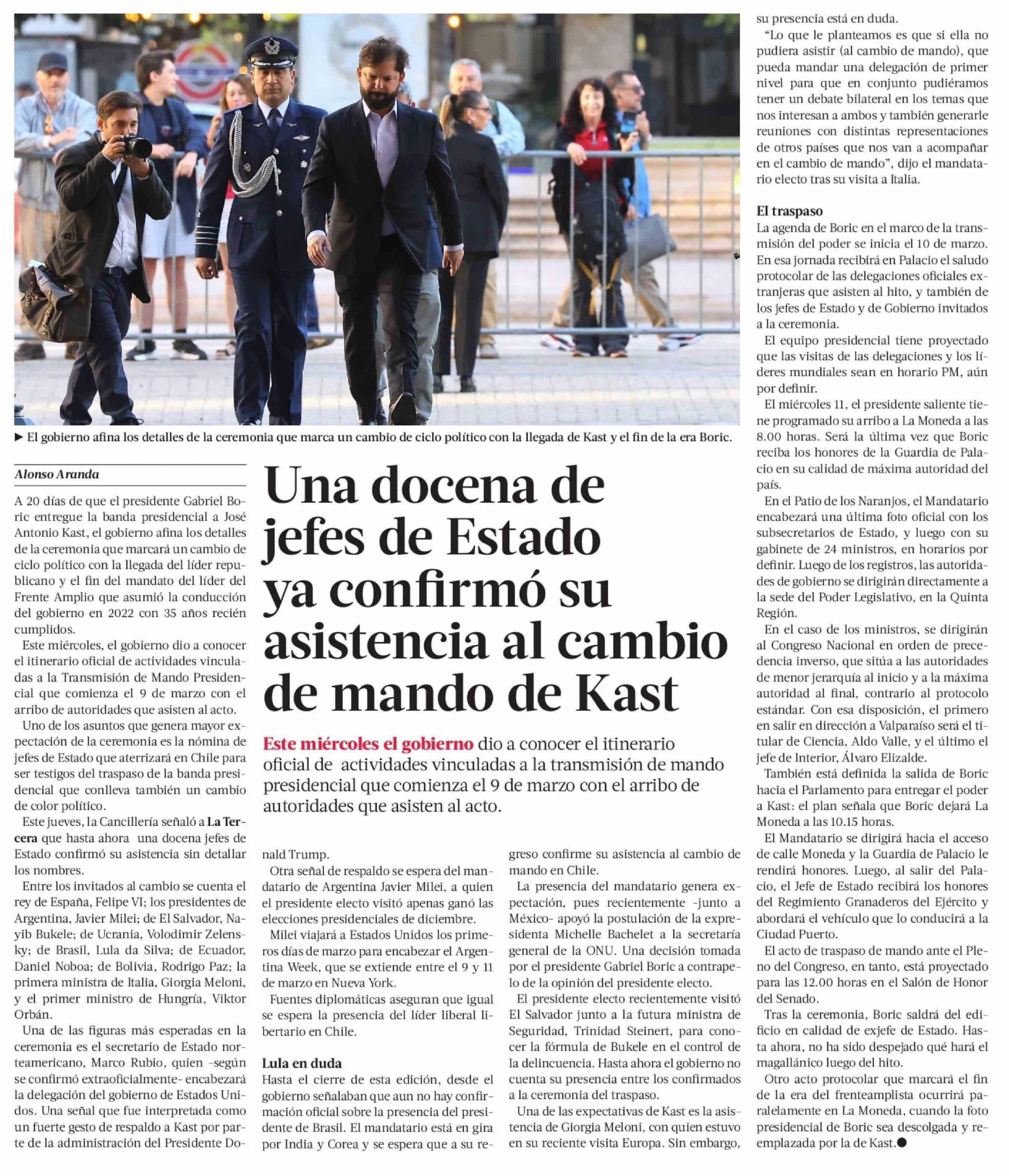Una docena de jefes de Estado ya confirmó su asistencia al cambio de mando de Kast