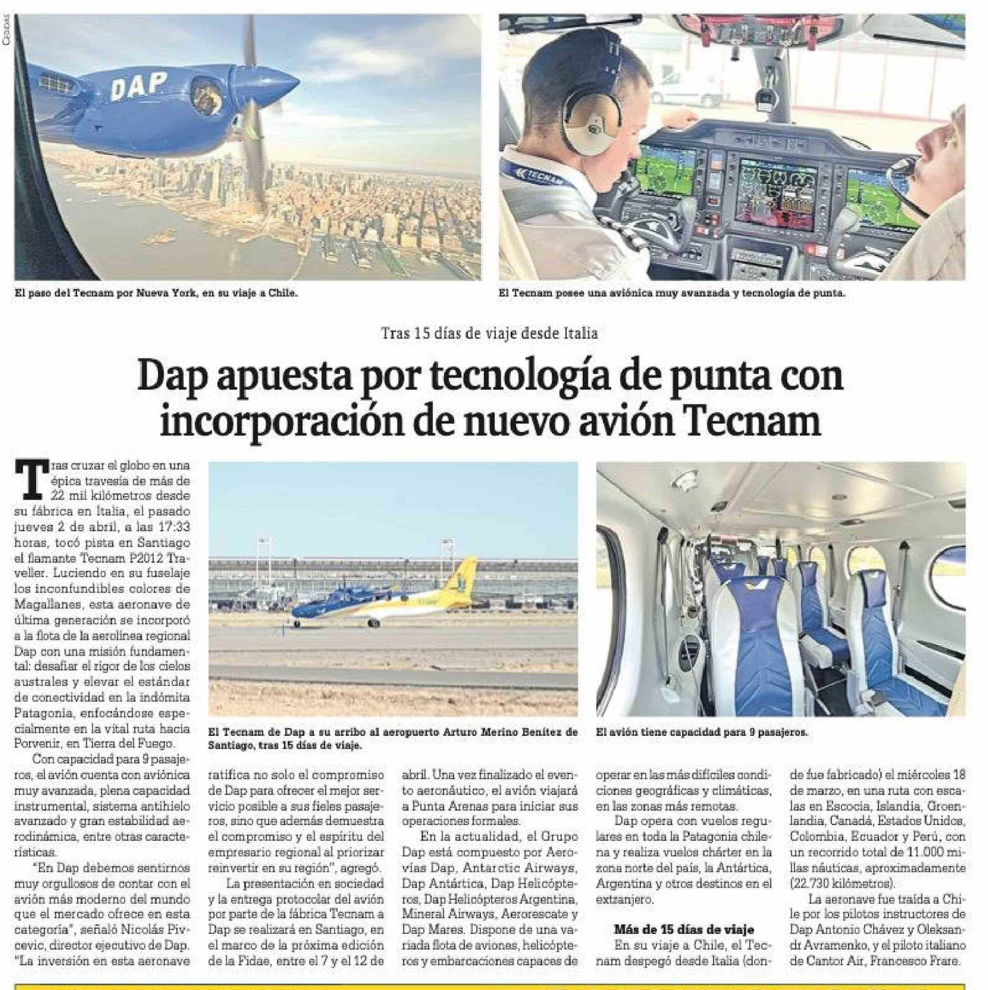 Dap apuesta por tecnología de punta con incorporación de nuevo avión Tecnam