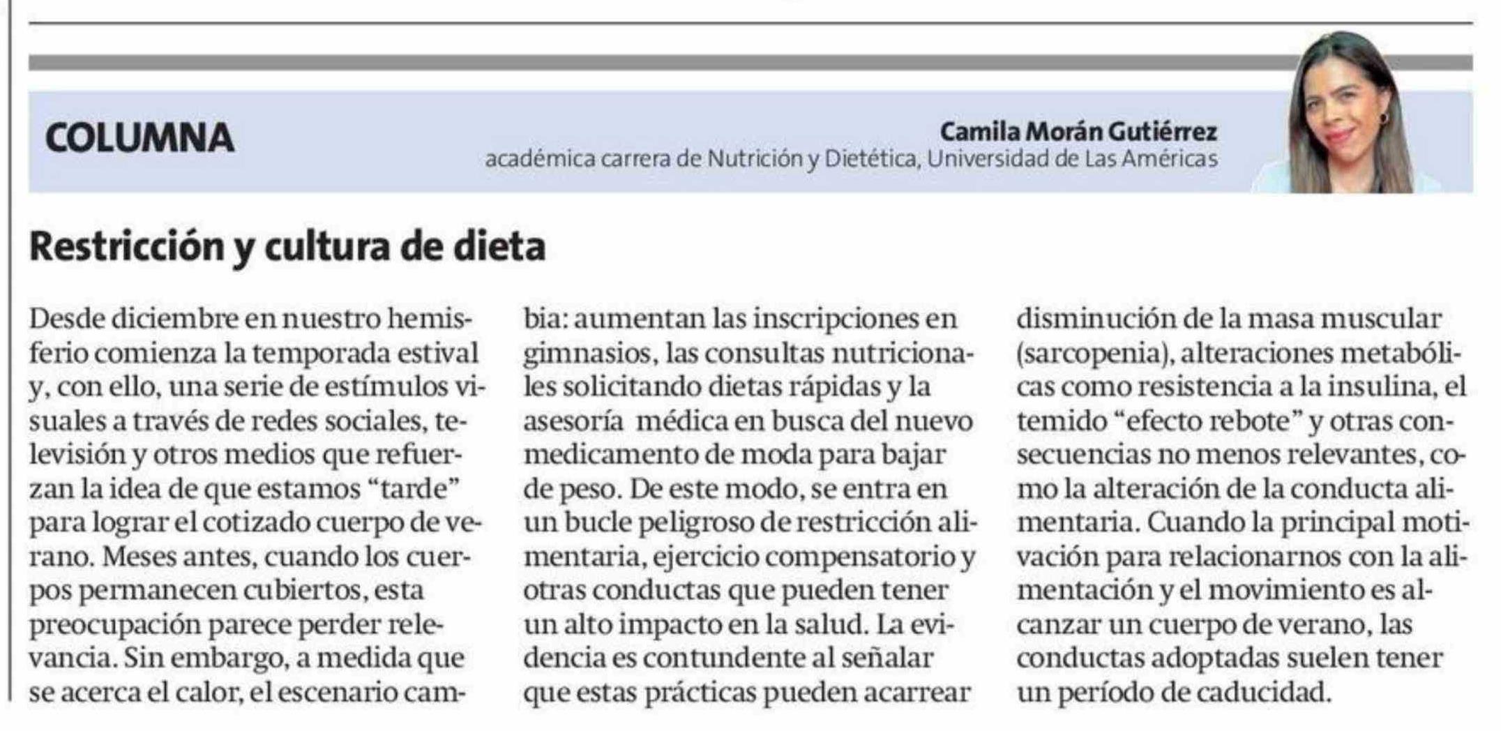 Título: Columnas de Opinión: Restricción y cultura de dieta