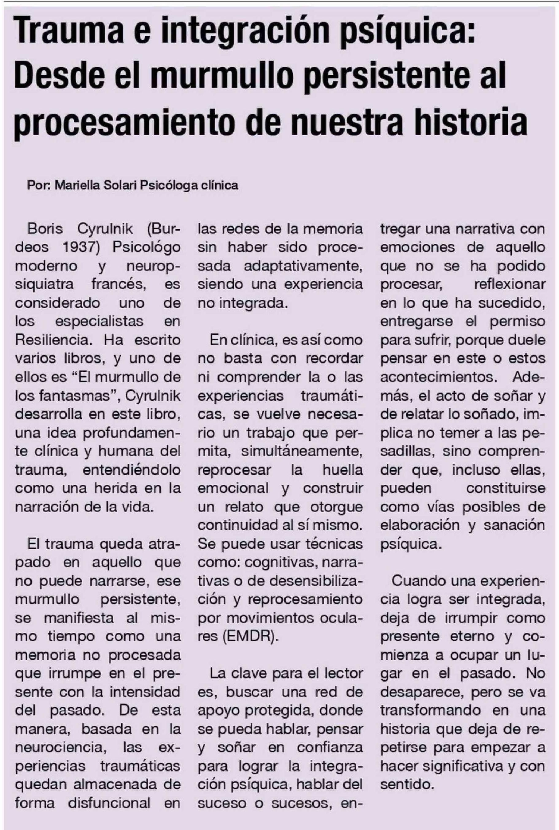 Trauma e integración psíquica: Desde el murmullo persistente al procesamiento de nuestra historia