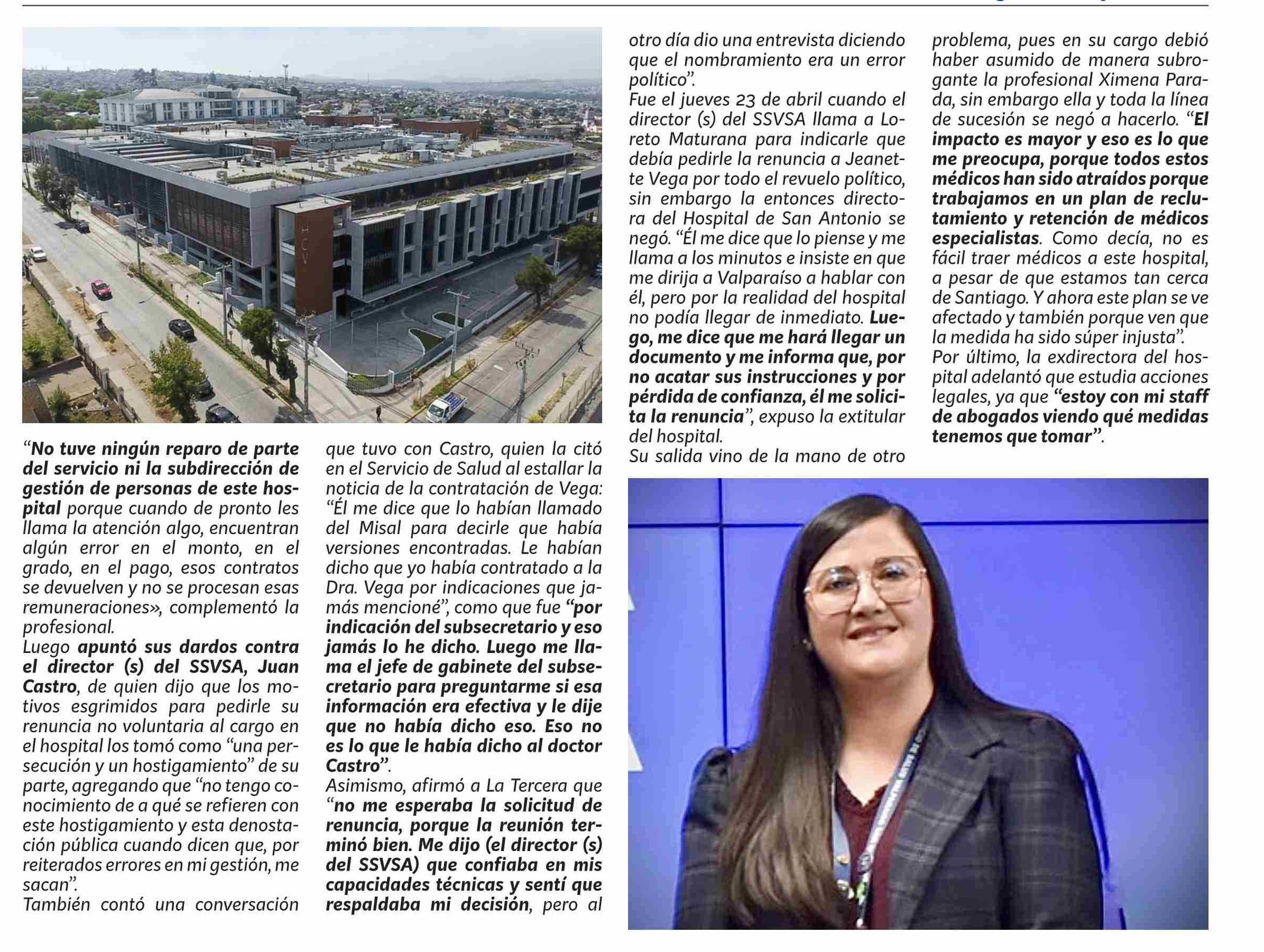 Exdirectora del Hospital de San Antonio acusa hostigamiento, evalúa acciones legales y respalda contratación de Jeanette Vega