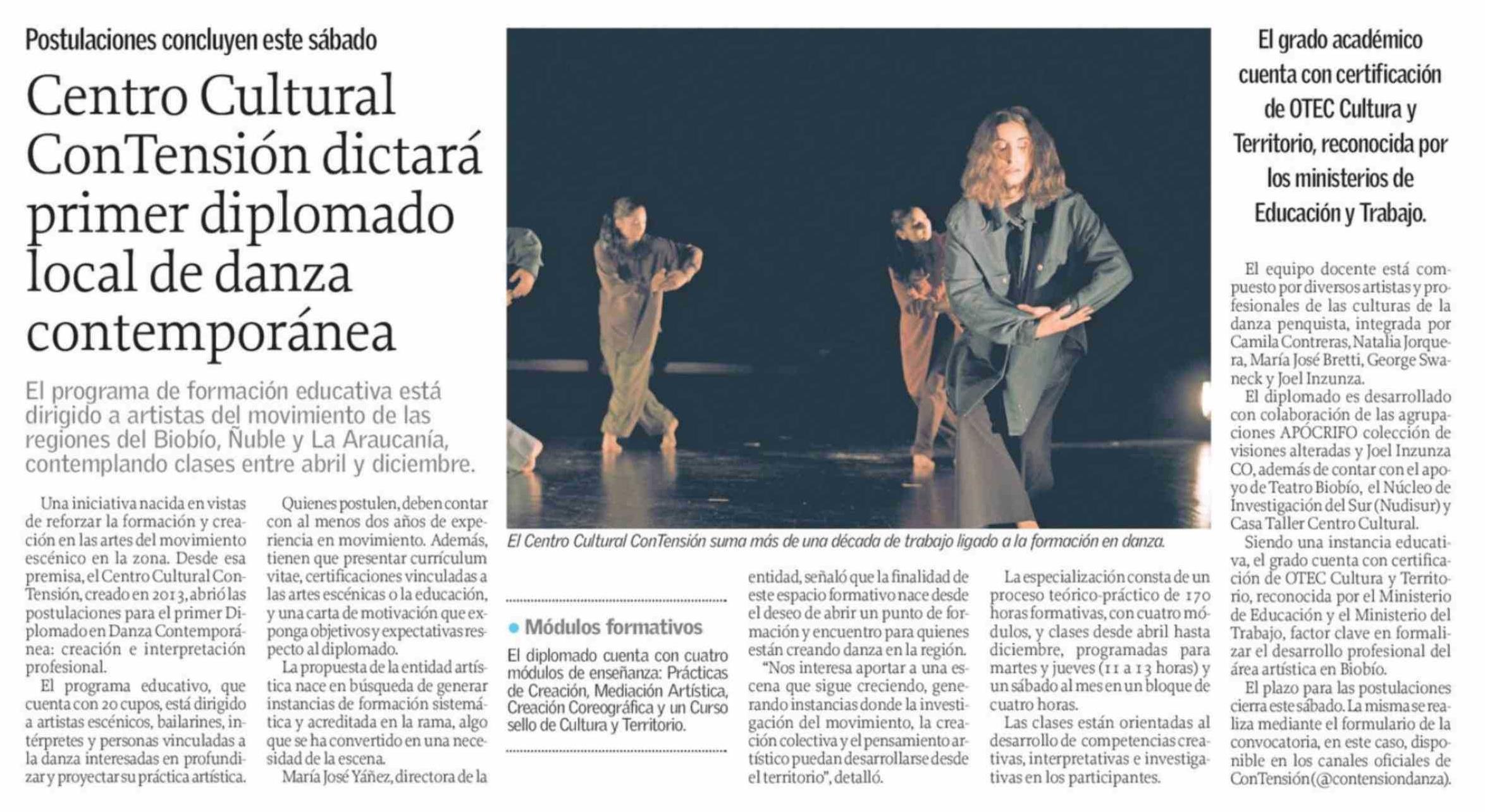 Centro Cultural ConTensión dictará primer diplomado local de danza contemporánea