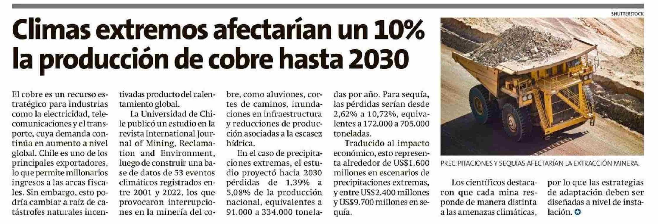 Climas extremos afectarían un 10% la producción de cobre hasta 2030
