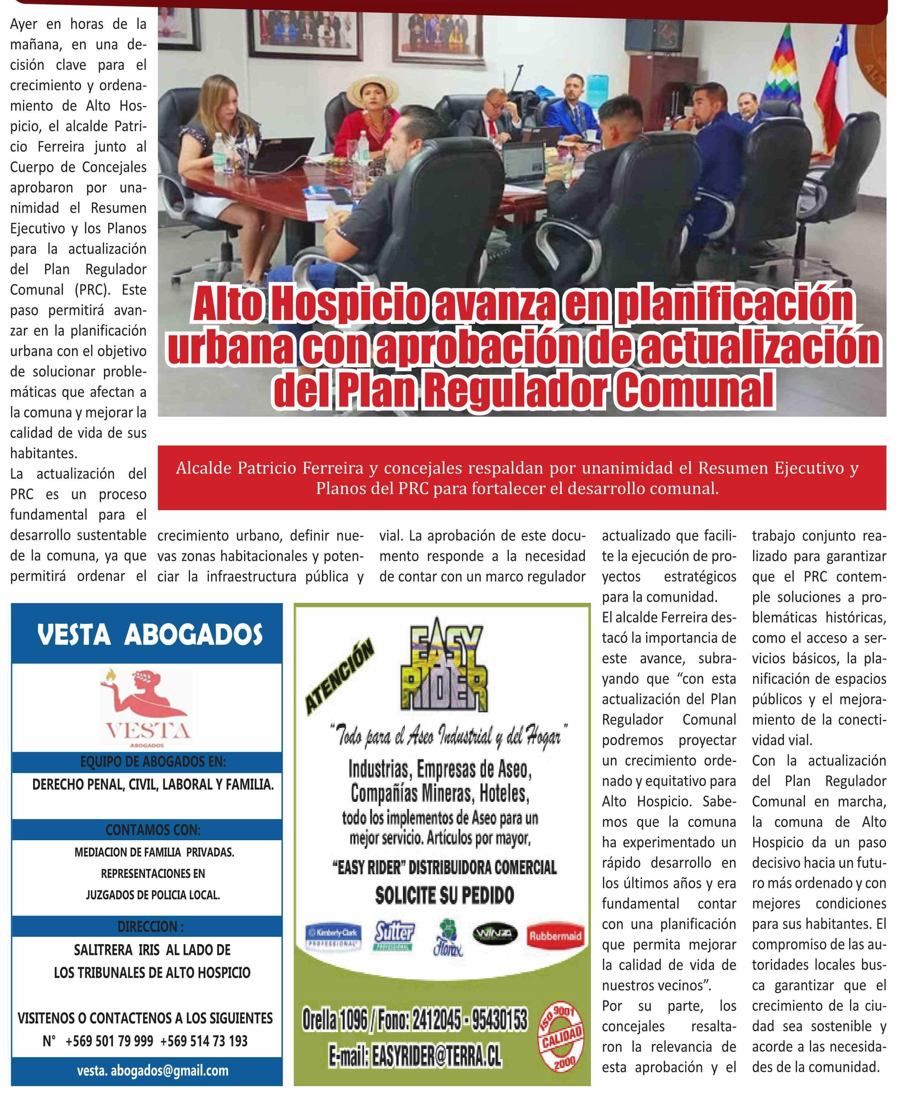 Título: Alto Hospicio avanza en planificación Alto Hospicio avanza en planificación urbana con aprobación de actualización urbana con aprobación de actualización del Plan Regulador Comunal del Plan Regulador Comunal
